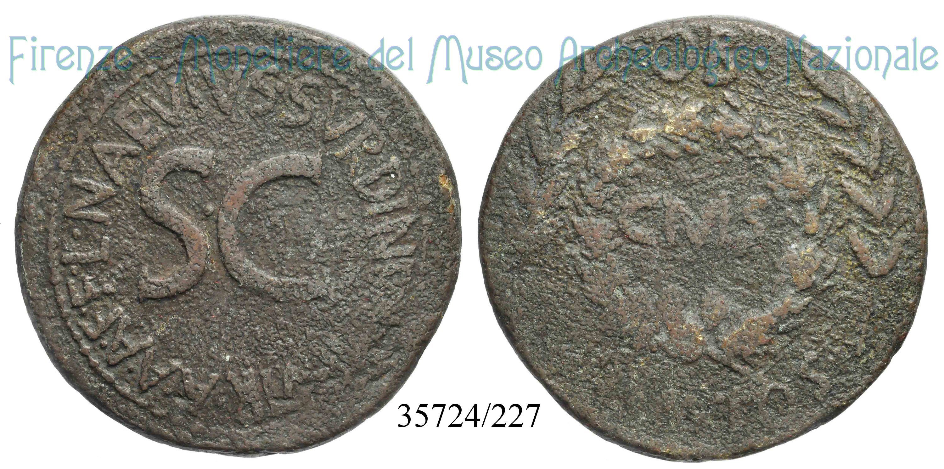 | L. NAEVIVS SVRDINVS IIIVIR AAAFF S C / RIC 383 - corona di quercia; ai lati, due rami di alloro (Moneta) | |||||||||||||