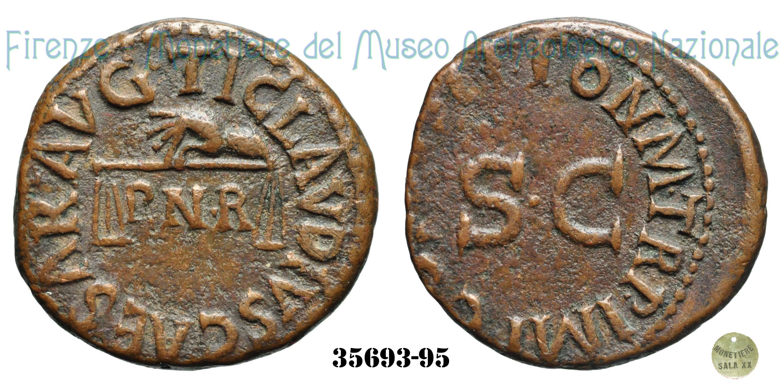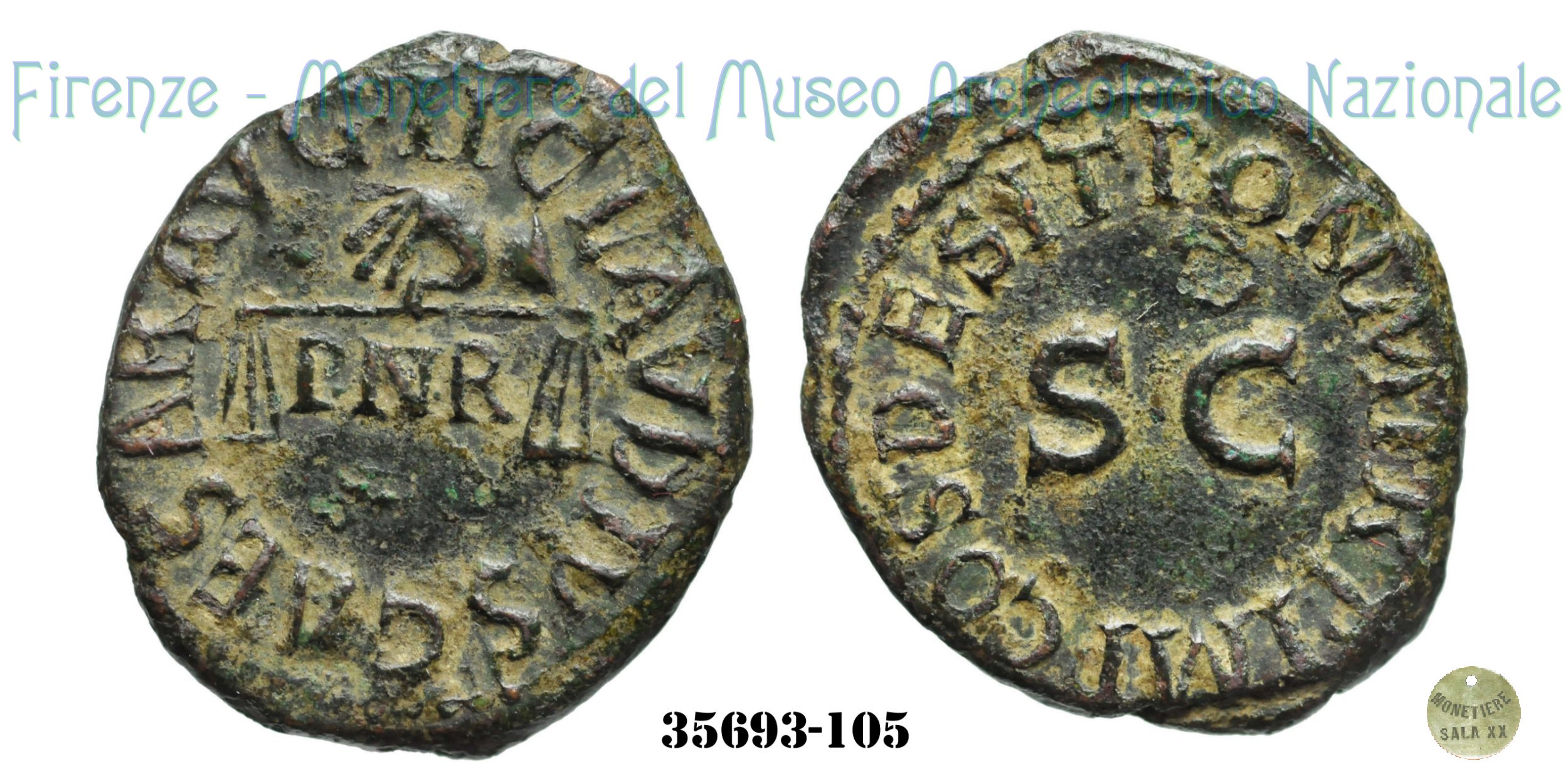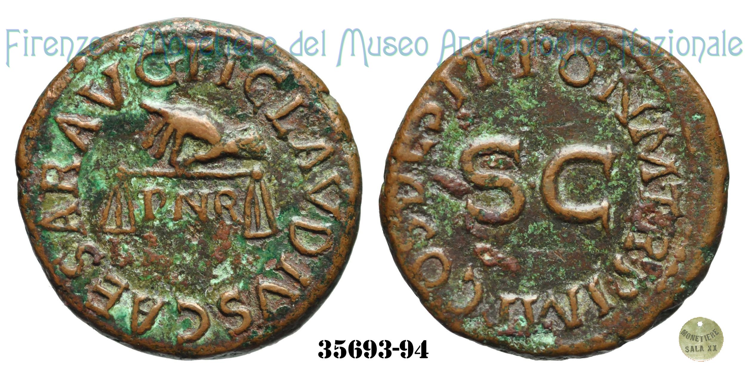 | Si ritiene che la sigla PNR presente al dritto possa riferirsi ad una rettifica del sistema monetario voluto da Claudio. Si suppone che tale formula possa essere letta come: Pondus Nummi Restitutum. Per ulteriori dettagli vedi RIC Vol 1 (Claudius) - pag.117. | ||||