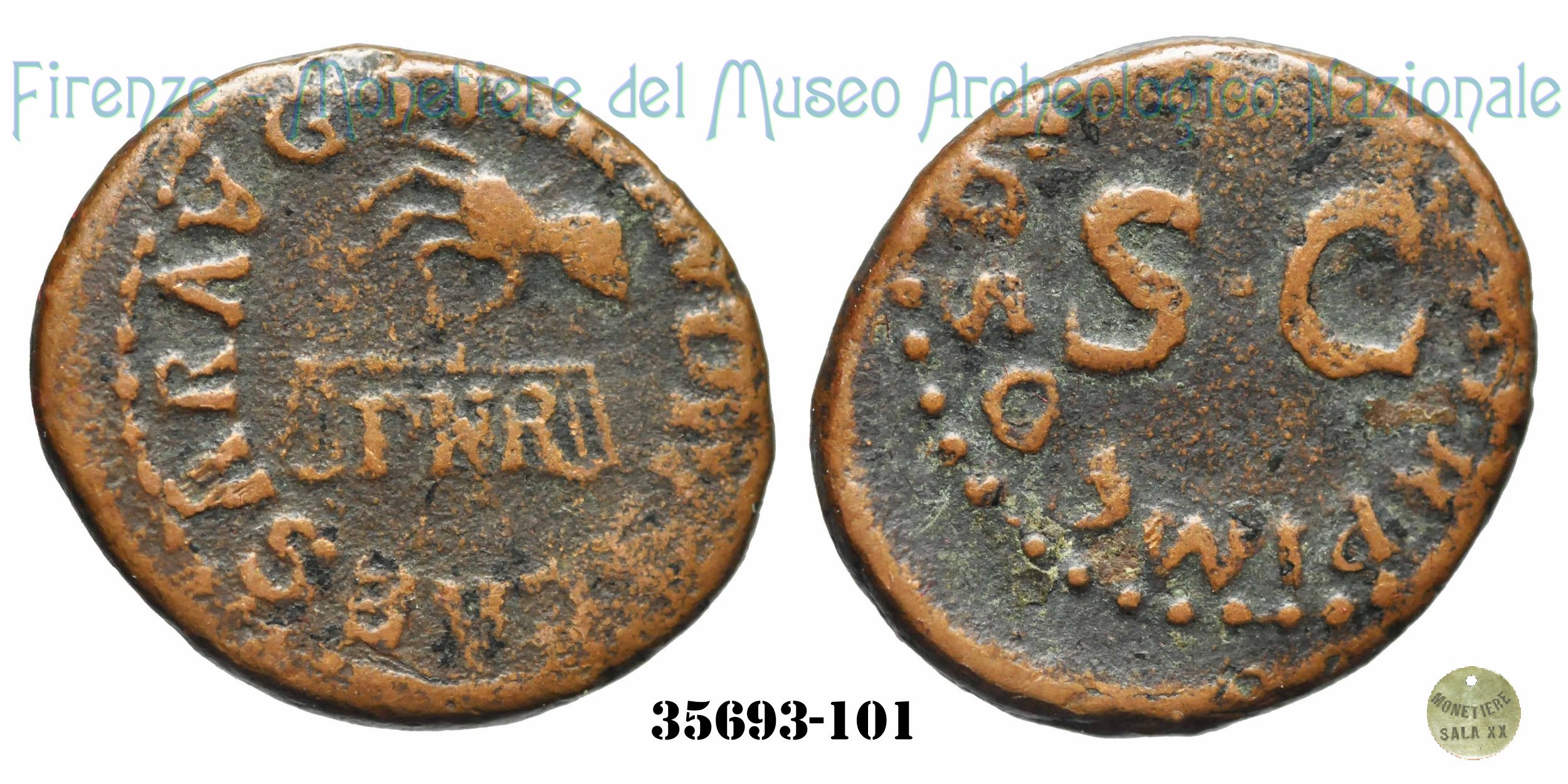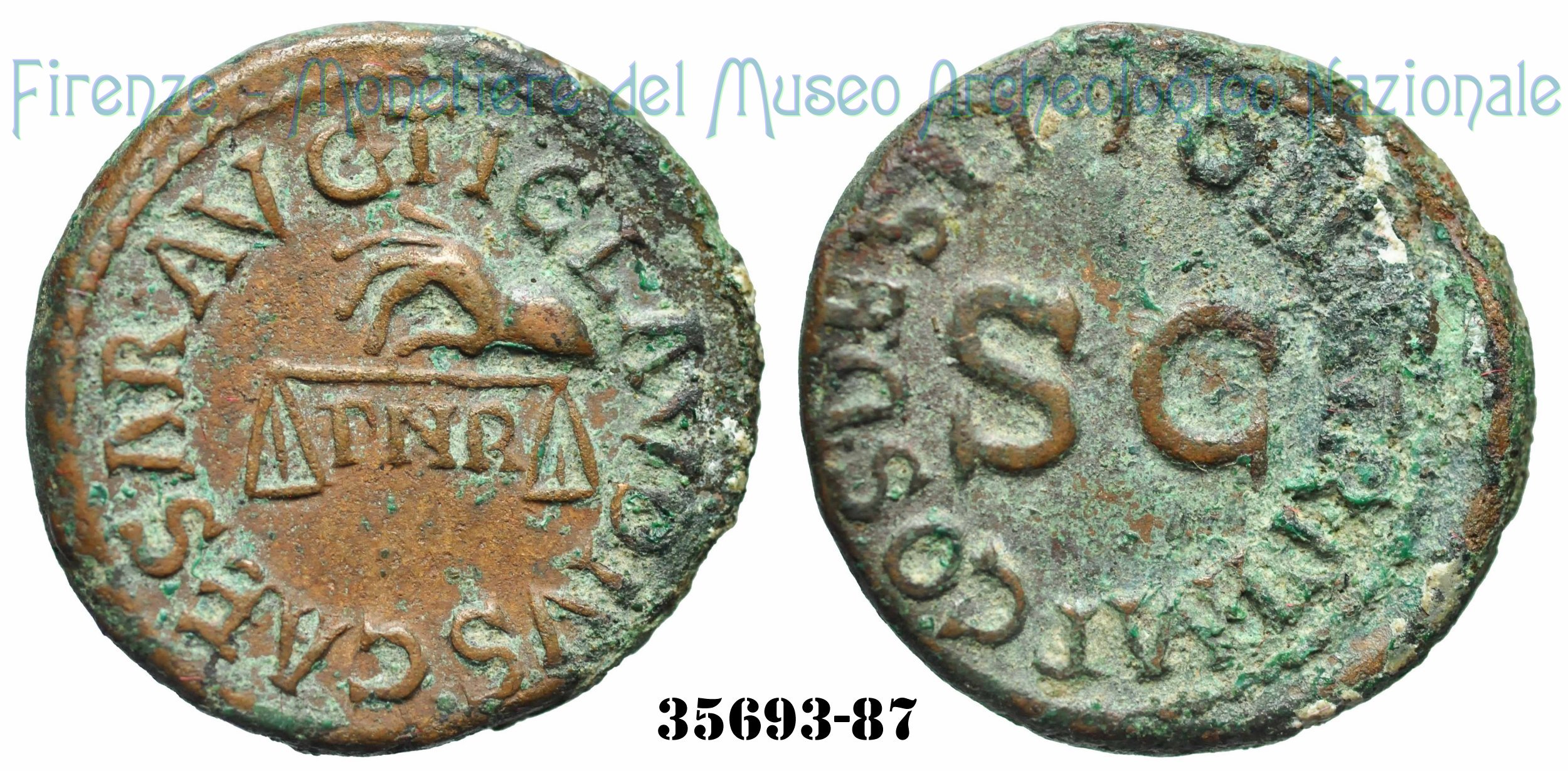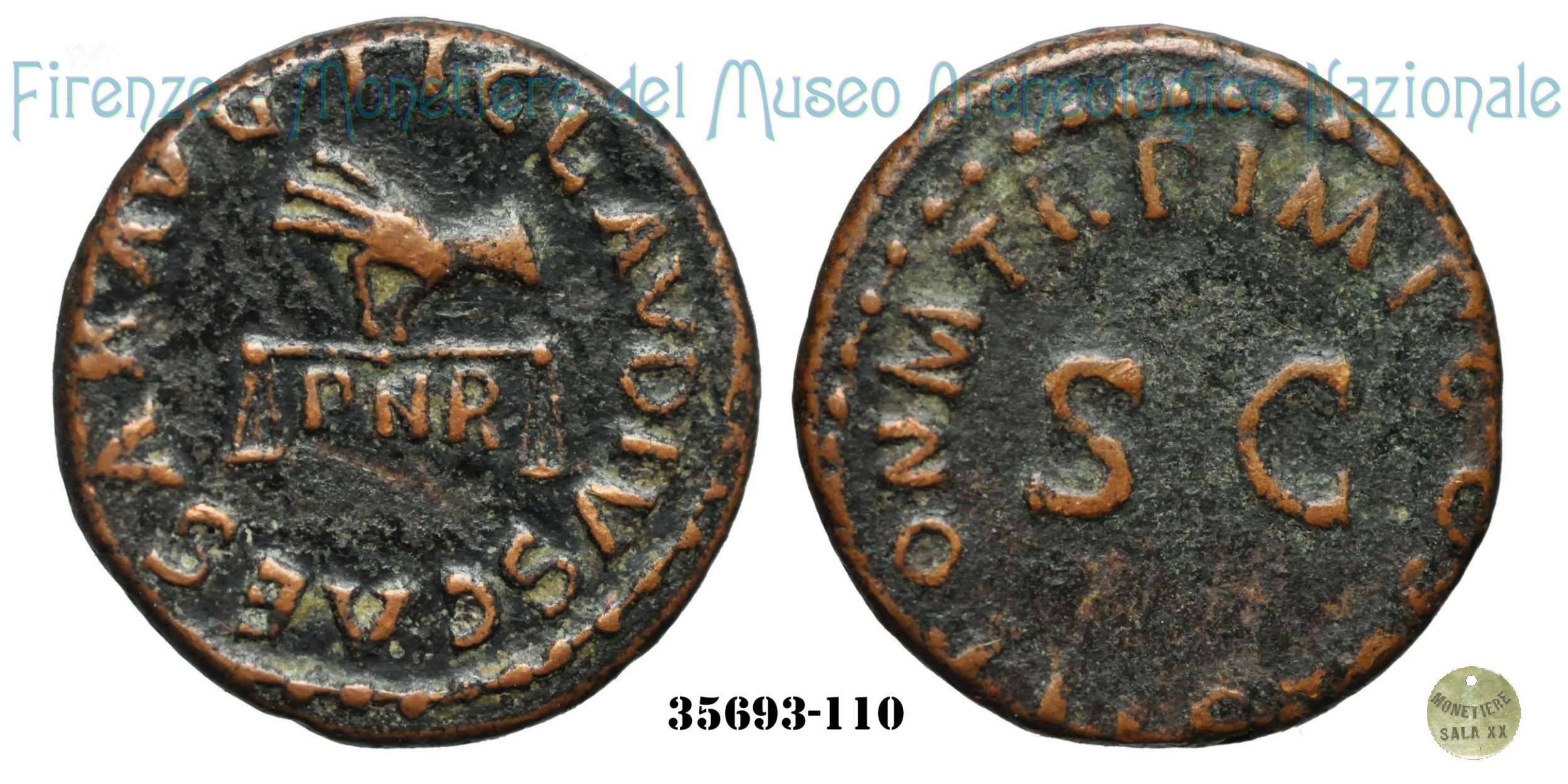 | Si ritiene che la sigla PNR presente al dritto possa riferirsi ad una rettifica del sistema monetario voluto da Claudio. Si suppone che tale formula possa essere letta come: Pondus Nummi Restitutum. Per ulteriori dettagli vedi RIC Vol 1 (Claudius) - pag.117. | ||||