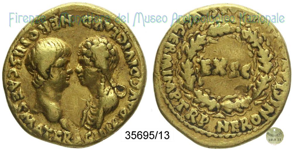 | Claudio morí il 12 Ottobre del 54 d.C. e Nerone assunse la Tribunicia Potestas presumibilmente il 4 Dicembre dello stesso anno. Probabilmente questa emissione risale all'ultimo mese dell'anno 54 d.C. | ||||