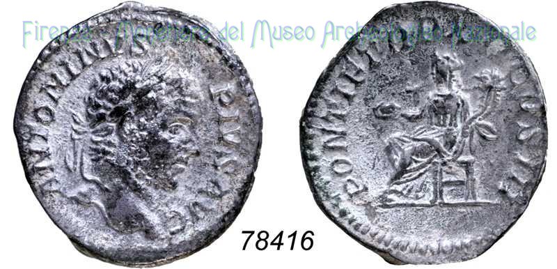 PONTIF TR P XII COS III - Ric. 111 Dritto: ↻ ANTONINVS PIVS AVG Testa laureata a d. Verso: ↻ PONTIF TR P XII COS III Concordia seduta a sinistra con patera nella destra e doppia cornucopia nella sinistra |