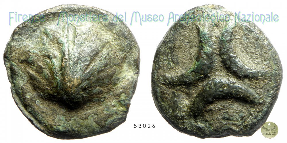 Teruncia Dritto: D/ Conchiglia Verso: R/ Tre crescenti contrapposte a triangolo | |