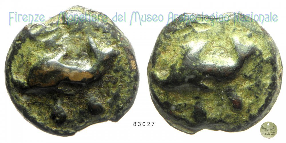 Uncia Dritto: D/ Testa laureata di Eracle a sinistra, a destra una clava, sotto un globetto Verso: → [VE] R/ Leone seduto verso sinistra mentre tiene nelle fauci una lancia; davanti, VE in monogramma | |