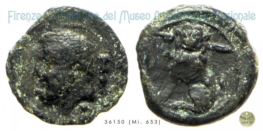 Biuncia Dritto: D/ Testa di Minerva con elmo corinzio a sinistra; sopra, due globetti Verso: → VE R/ Civetta volta a s, con ali chiuse posata su un ramo di alloro; sopra VE in monogramma |