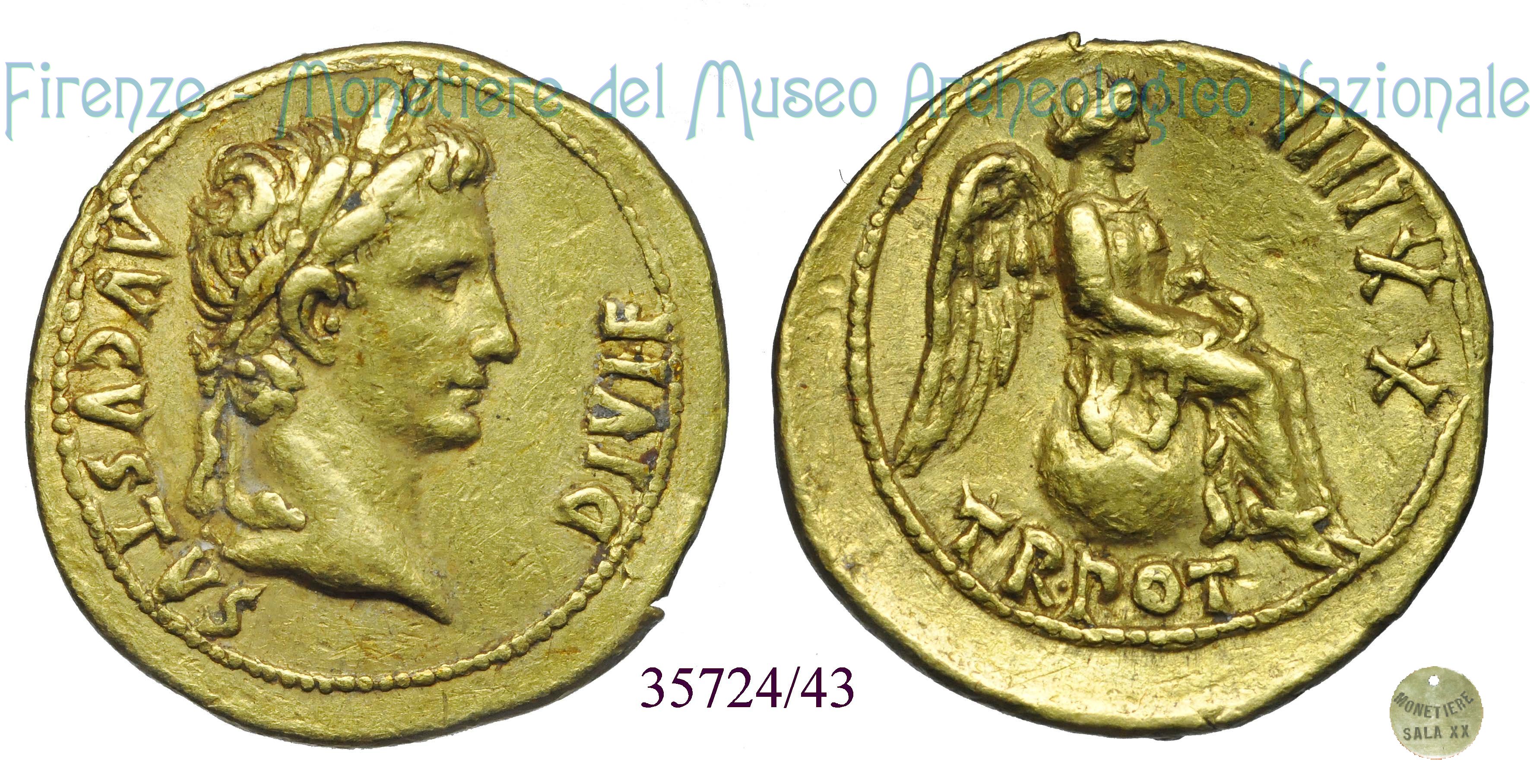 TR POT – XVII RIC 203 Dritto: ↺ AVGVSTVS – DIVI F Testa laureata di Augusto a d. Verso: ↻ TR POT – XVII Vittoria seduta a destra su globo, le mani sul grembo | |