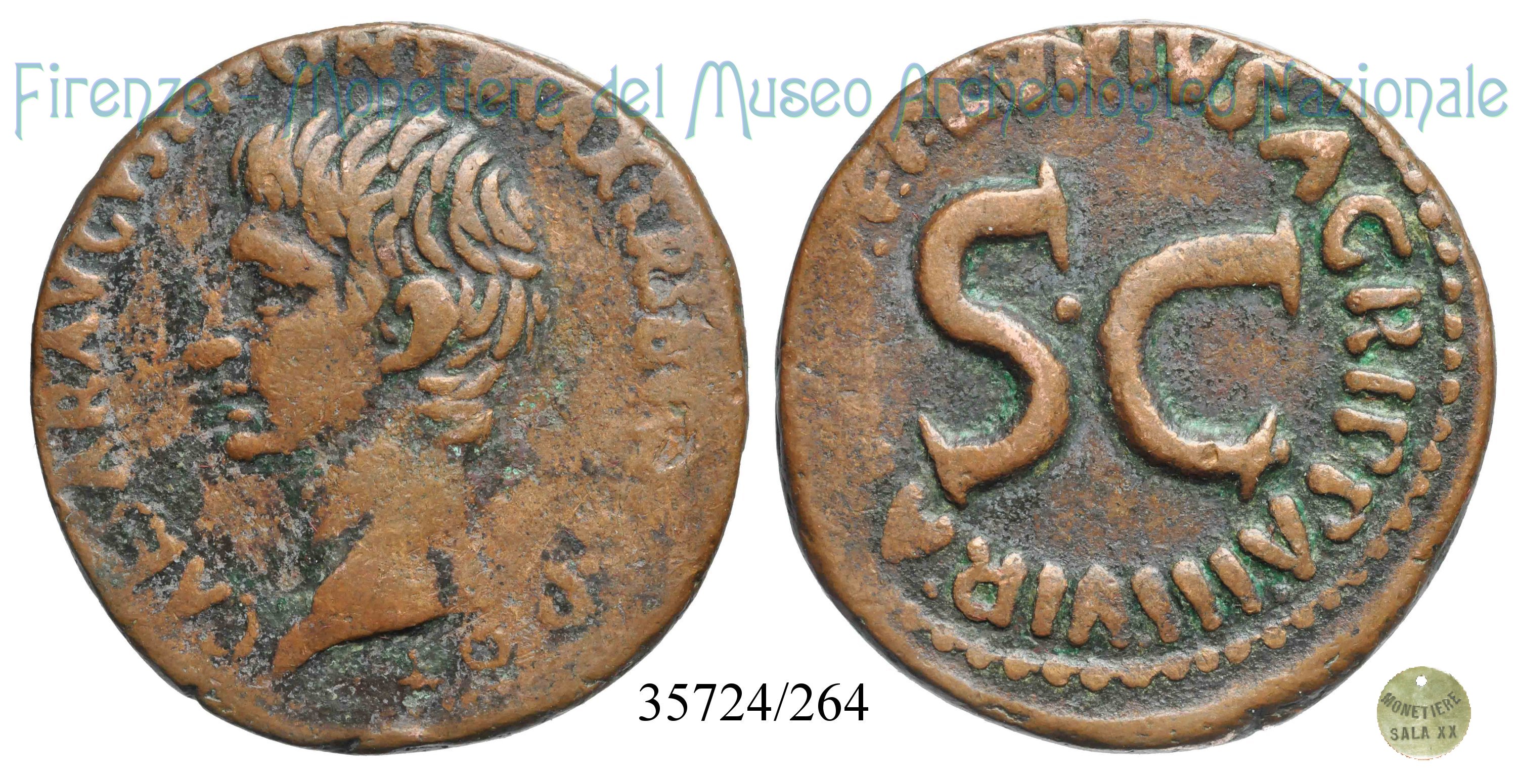 P LVRIVS AGRIPPA IIIVIR AAAFF S C / RIC 428 Dritto: ↻ CAESAR AVGVST PONT MAX TRIBVNIC POT Testa nuda di Augusto a sinistra Verso: ↻ P LVRIVS AGRIPPA IIIVIR AAAFF S C grande S C |