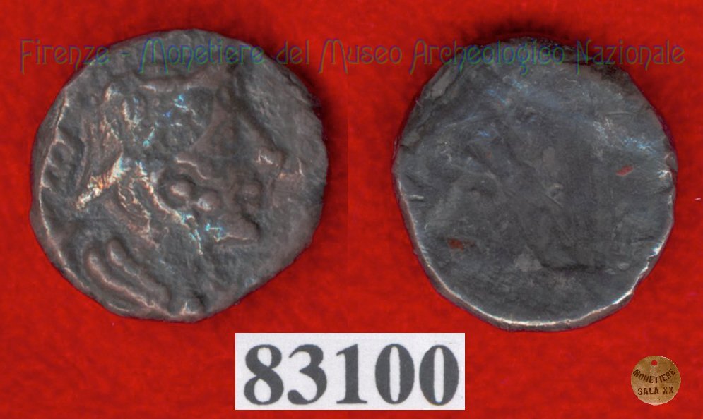Testa maschile a d. / senza tipo (HN Italy 136) (400 a.C. - Pupluna) SNG Firenze 97 (B) Entrambe le facce | Monetiere Archeologico Firenze | Tue 27/04/10 - 08:59 | ||