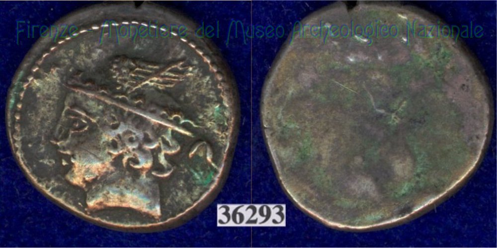 Testa di Culsans / Clava (HN Italy 109f) (299-200 a.C. - Velathri) SNG Firenze, 926 Entrambe le facce | Monetiere Archeologico Firenze | Sat 24/04/10 - 16:57 | ||