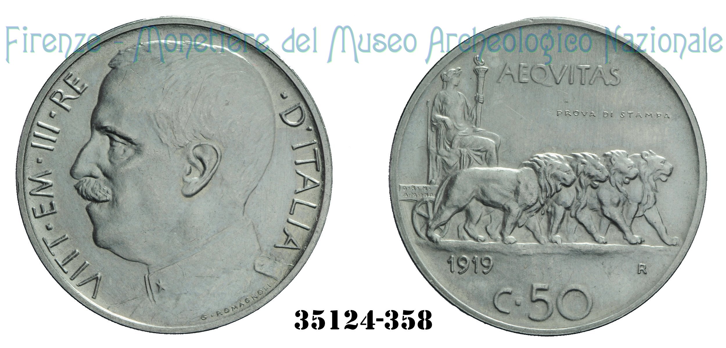 50 centesimi "Leoni" (1919 - Roma) D/ VITT • EM • III • RE • D’ITALIA • R/ AEQVITAS T/ liscio Montenegro 234 | Monetiere Archeologico Firenze | Fri 1/08/14 - 20:30 | ||