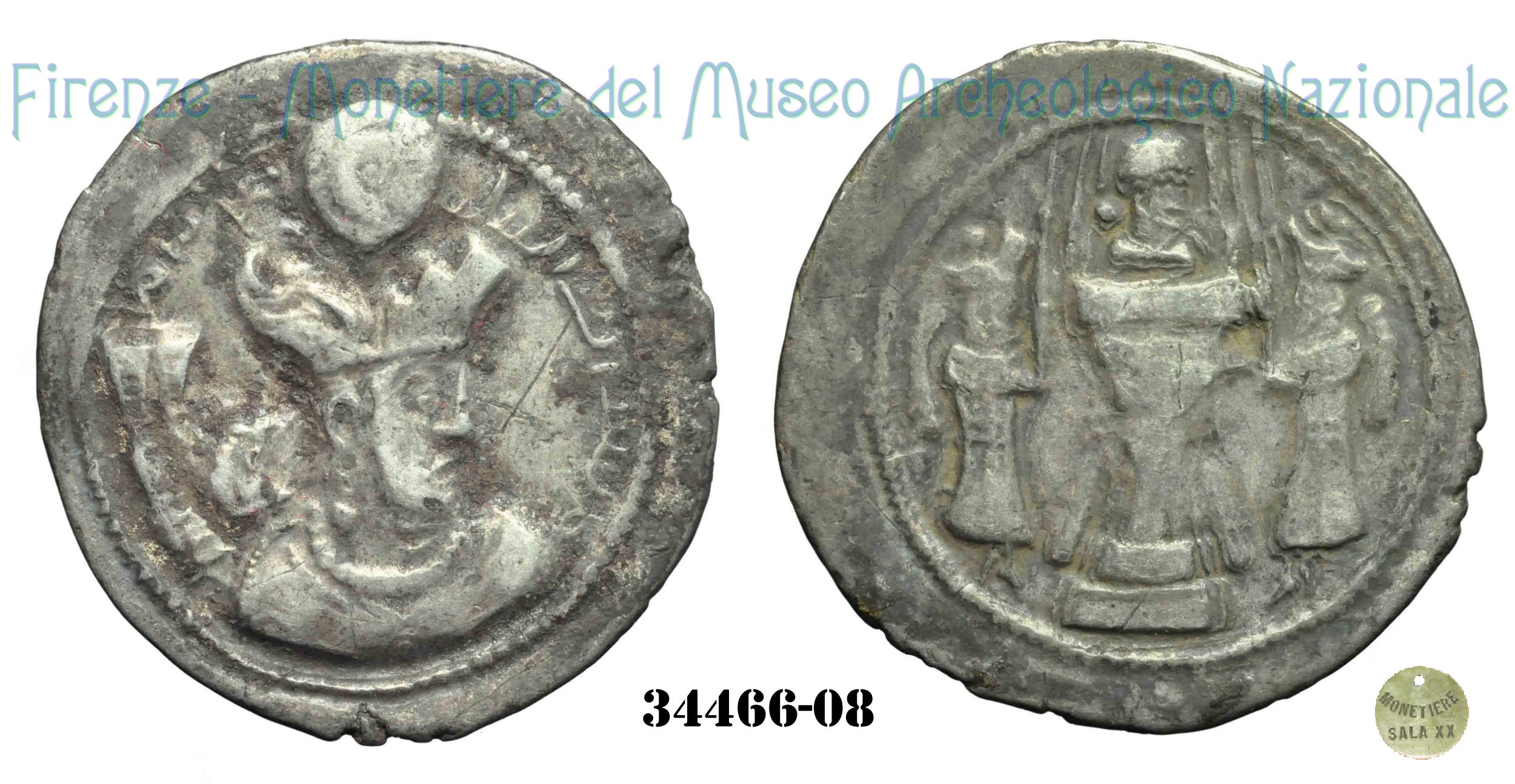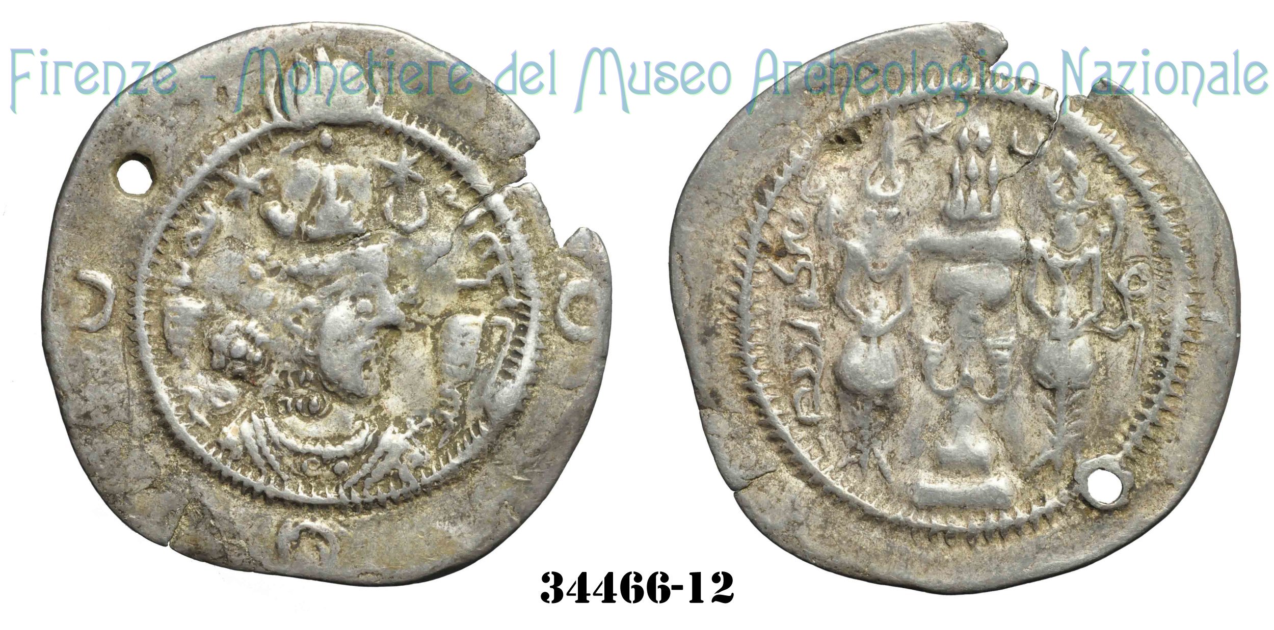 Dracma (590-591 d.C. - Veh-kavad) D/ Legenda pahlavi: afzut Auhramaz - Che Hormisdas sia prospero R/ Anno e zecca: Davajdah (12) e WYH Göbl SN, IV Ormisda, Ia / 1 | Monetiere Archeologico Firenze | Sat 5/07/14 - 21:06 | ||