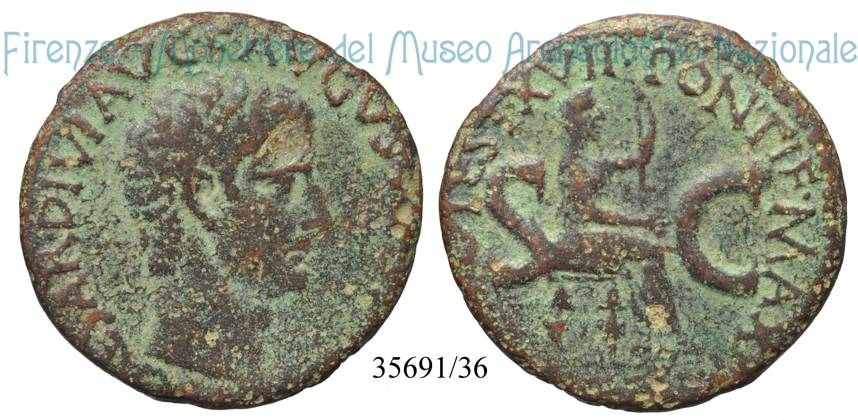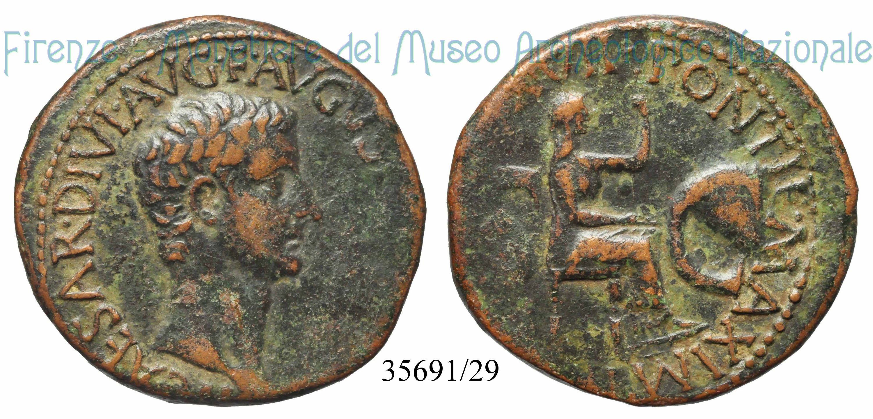 PONTIF MAXIM - RIC 25 (14-37 d.C. - Lugdunum) D/ TI CAESAR DIVI- AVG F AVGVSTVS R/ PONTIF MAXIM RIC I, 25 | Monetiere Archeologico Firenze | Sat 11/01/14 - 15:12 | ||