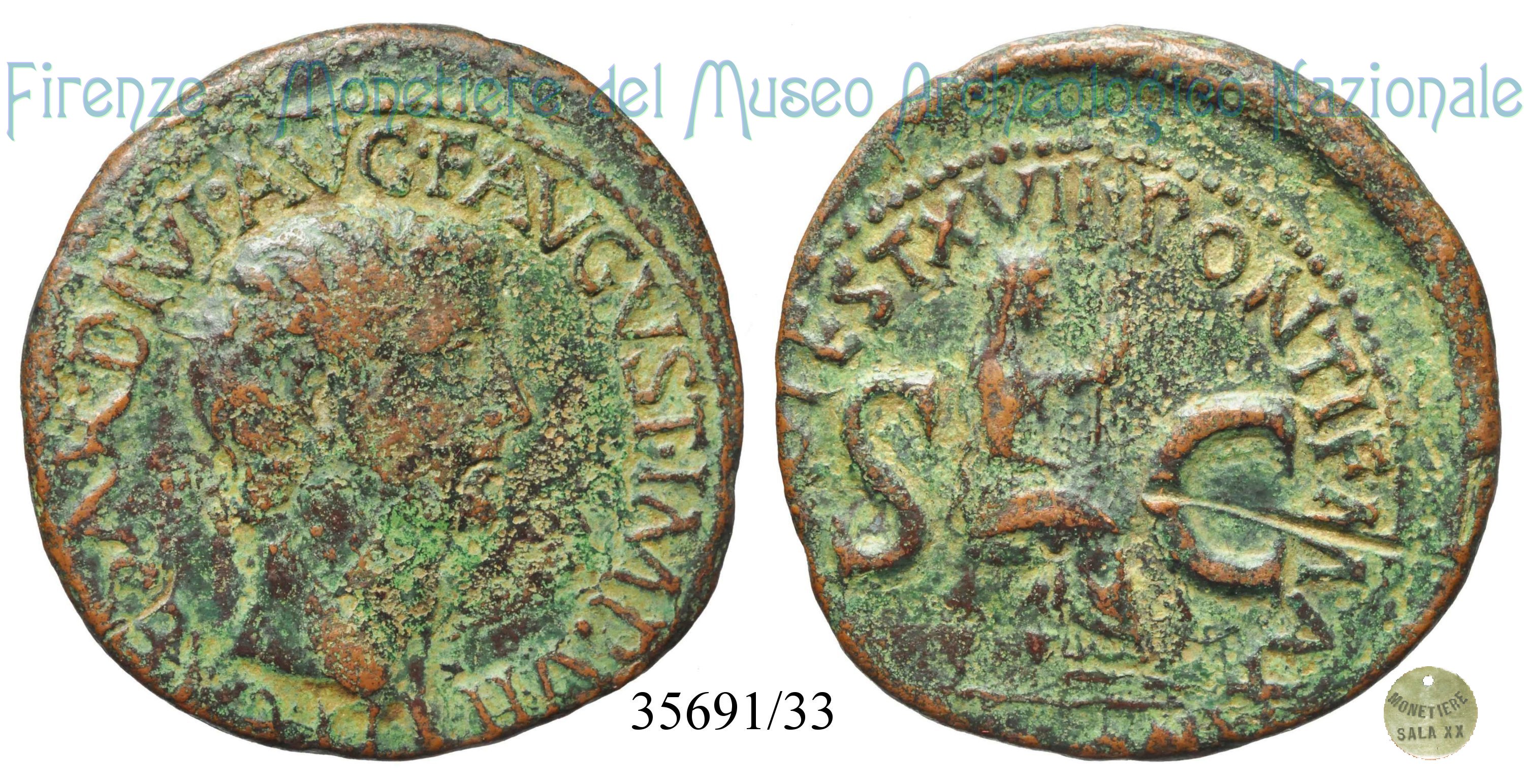 PONTIF MAXIM TRIBVN POTEST XVII S C - RIC 33 (15-16 d.C. - Roma) D/ TI CAESAR DIVI AVG F AVGVST IMP VII R/ PONTIF MAXIM TRIBVN POTEST XVII S C RIC I, 33 | Monetiere Archeologico Firenze | Sat 4/01/14 - 17:49 | ||