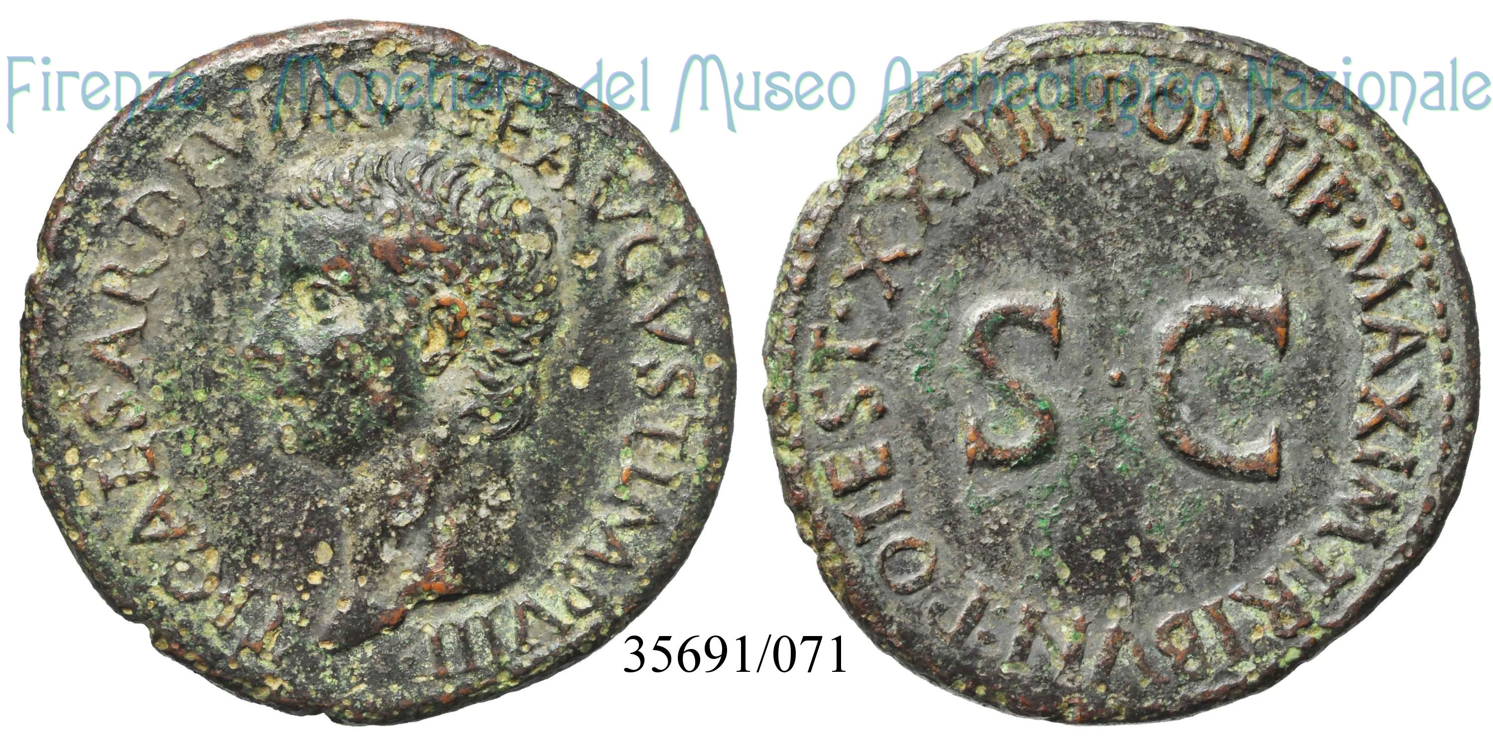 PONTIF MAXIM TRIBVN POTEST XVII S-C - RIC 34, Figura femminile seduta (15-16 d.C. - Roma) D/ TI CAESAR DIVI AVG F AVGVST IMP VII R/ PONTIF MAXIM TRIBVN POTEST XVII S-C Ric. 34 (Vol. 1) | Monetiere Archeologico Firenze | Tue 24/12/13 - 15:22 | ||