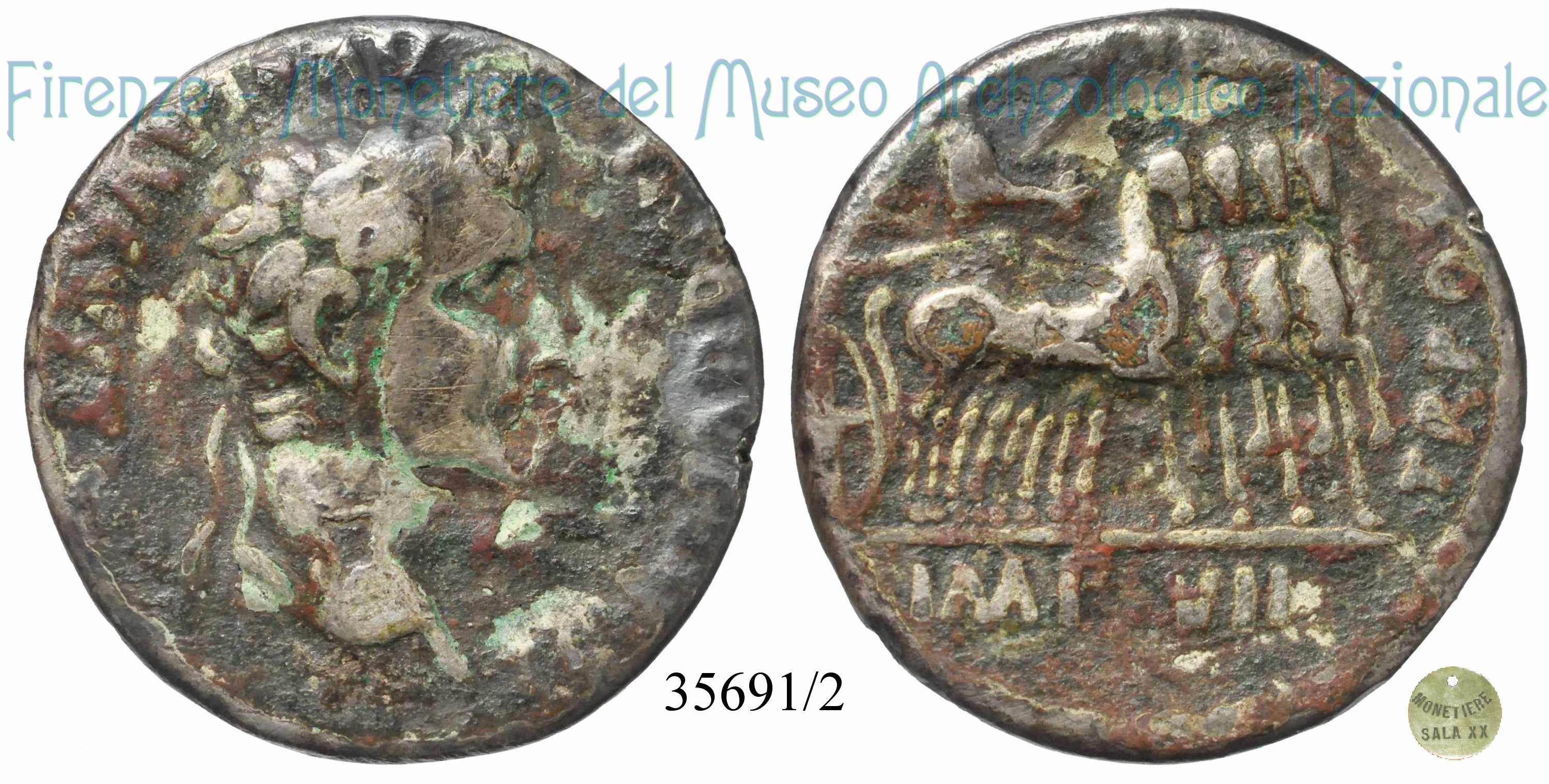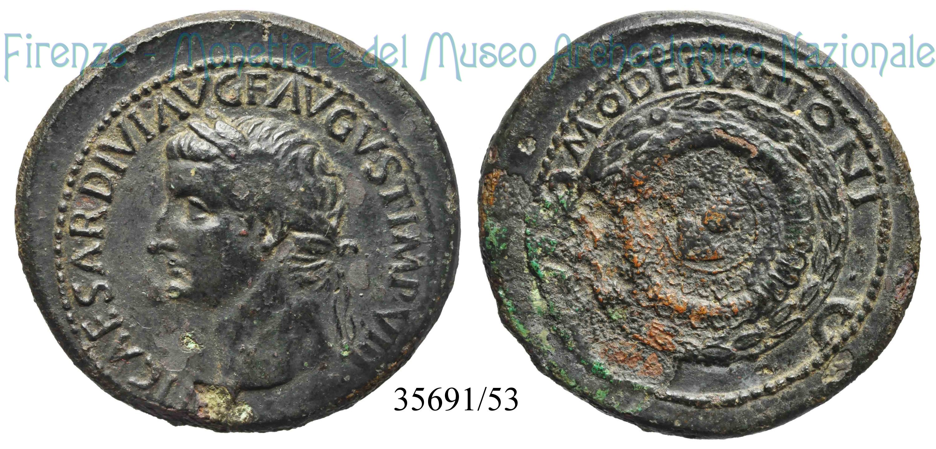 MODERATIONI - RIC 39 - Scudo in doppia corona (16-22 d.C. - Roma) D/ TI CAESAR DIVI AVG F AVGVST IMP VIII R/ MODERATIONI RIC I, 39 | Monetiere Archeologico Firenze | Mon 30/12/13 - 19:11 | ||