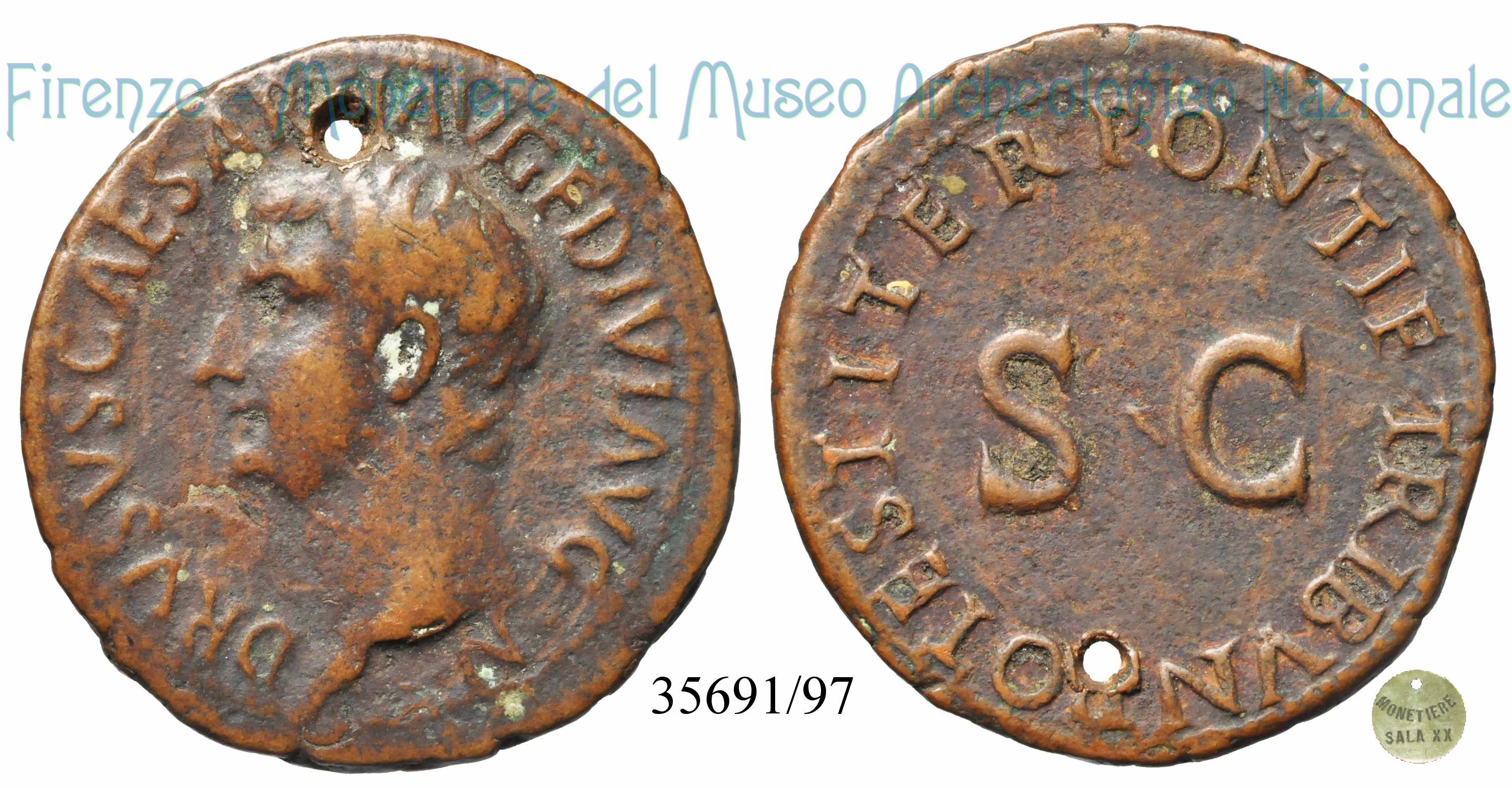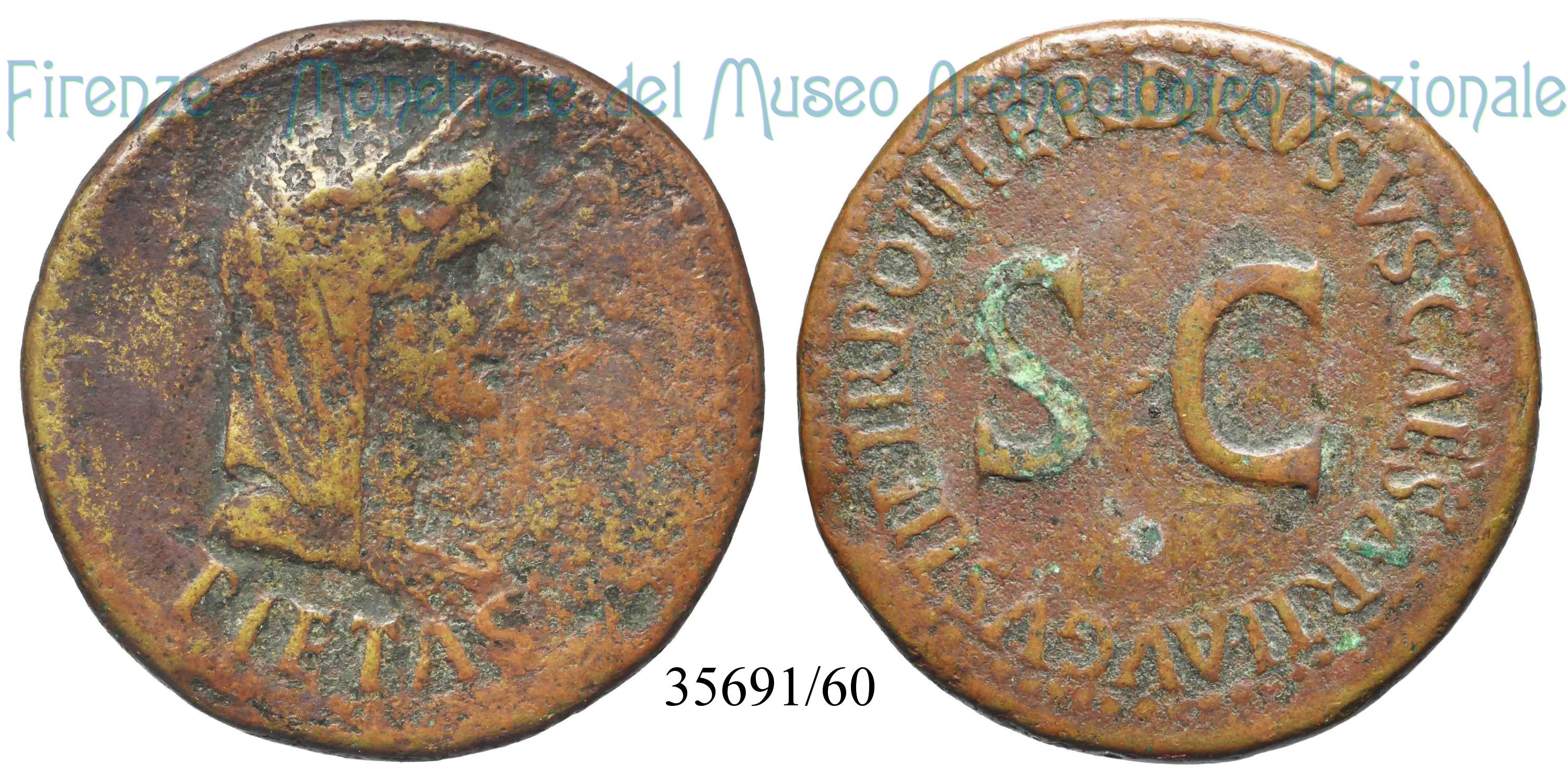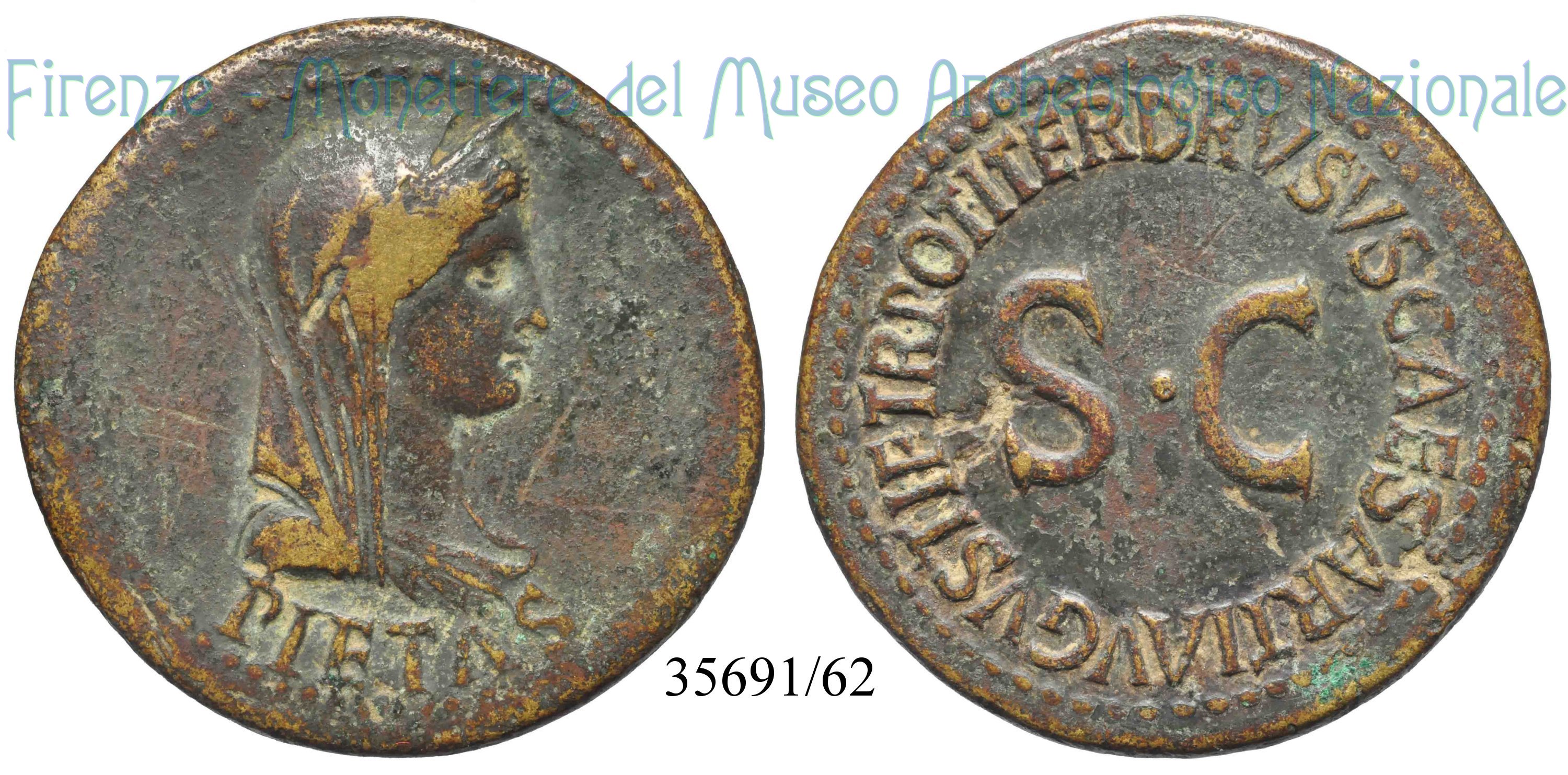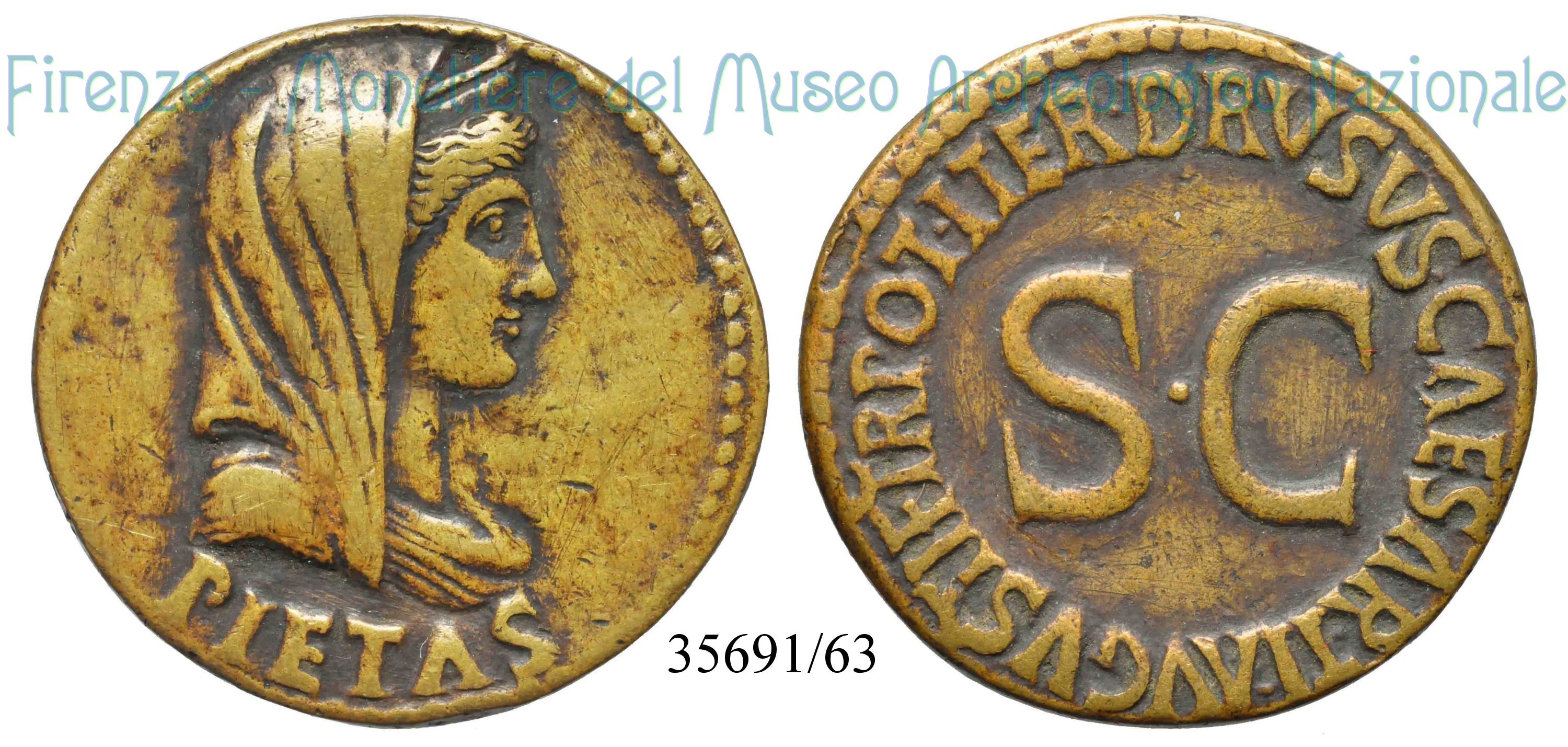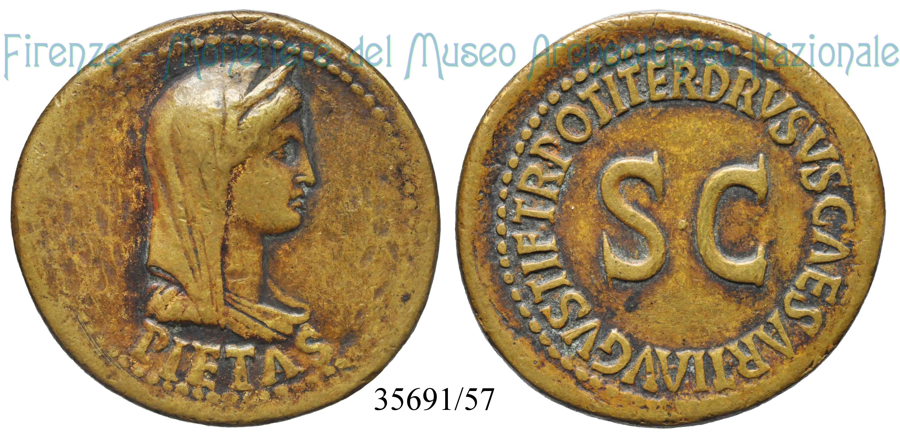DRVSVS CAESAR TI AVGVSTI F TR POT ITER SC / RIC 43 (22-23 d.C. - Roma) D/ PIETAS R/ DRVSVS CAESAR TI AVGVSTI F TR POT ITER SC RIC I, 43 (B) | Monetiere Archeologico Firenze | Thu 26/12/13 - 18:32 | ||