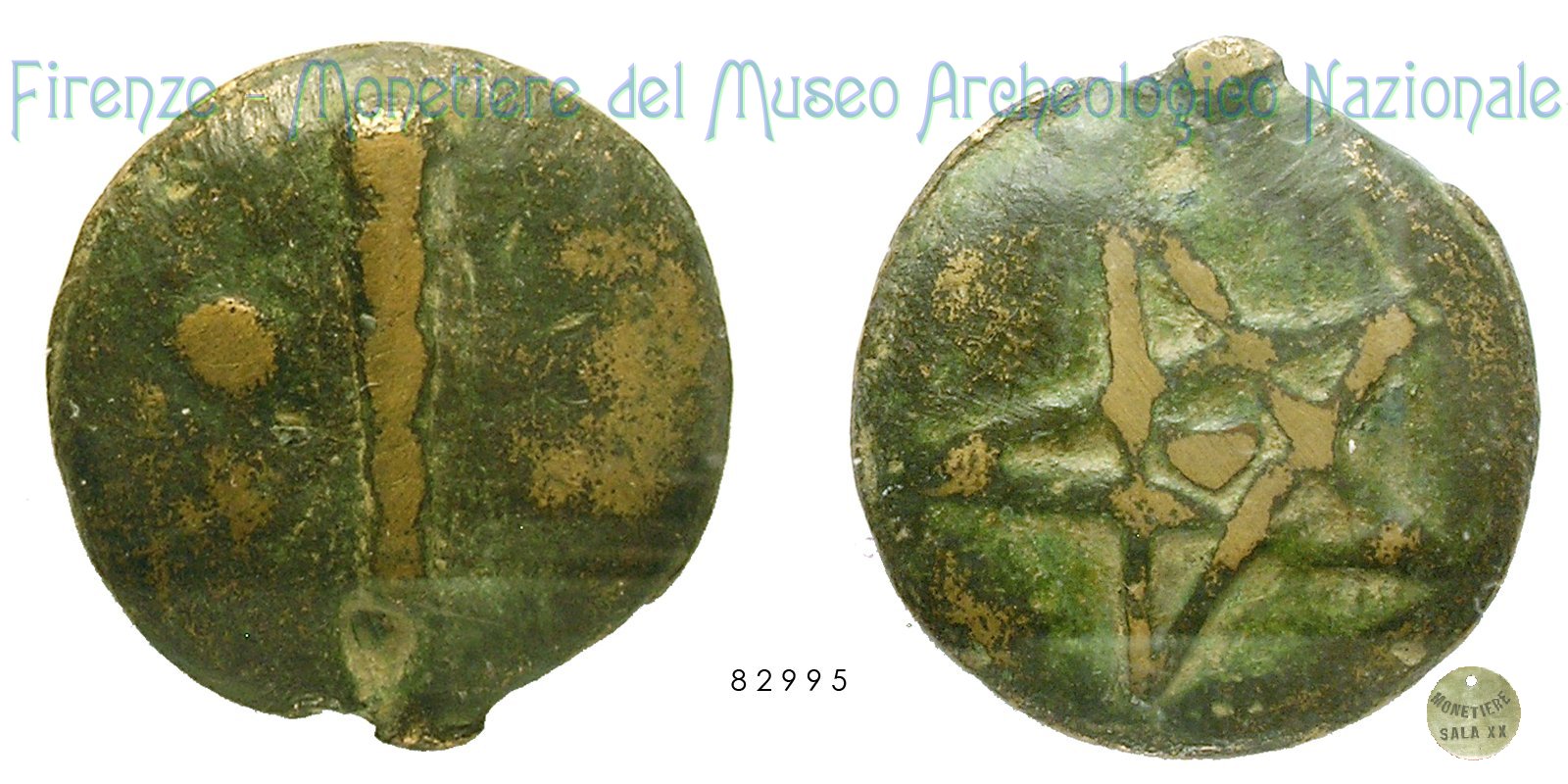Serie Clava - Pentagono (300-275 a.C. - Incerta Centro Italia) D/ Clava; a lato, un globetto R/ Pentagono e, al centro, segno di valore Vecchi 222;
