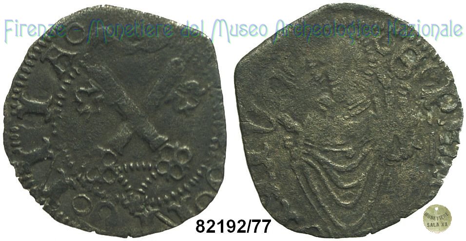Quattrino (1446-1464 - Bologna) D/ [tiara] ° DE ° BO ° NO ° NIA ° R/ ° S ° PETR - ONIVS ° Lettere N inverse Galeata n. 81 ; CNI Vol. X, n. 82 var. | Monetiere Archeologico Firenze | Sat 17/08/13 - 02:18 | ||