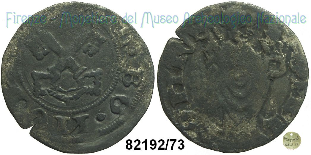 Quattrino (1446-1464 - Bologna) D/ [tiara] ° DE ° BO ° NO ° NIA ° R/ ° S ° PETR - ONIVS ° Lettere N inverse Galeata n. 75 ; CNI Vol. X, n. 82 var. | Monetiere Archeologico Firenze | Sat 17/08/13 - 02:15 |