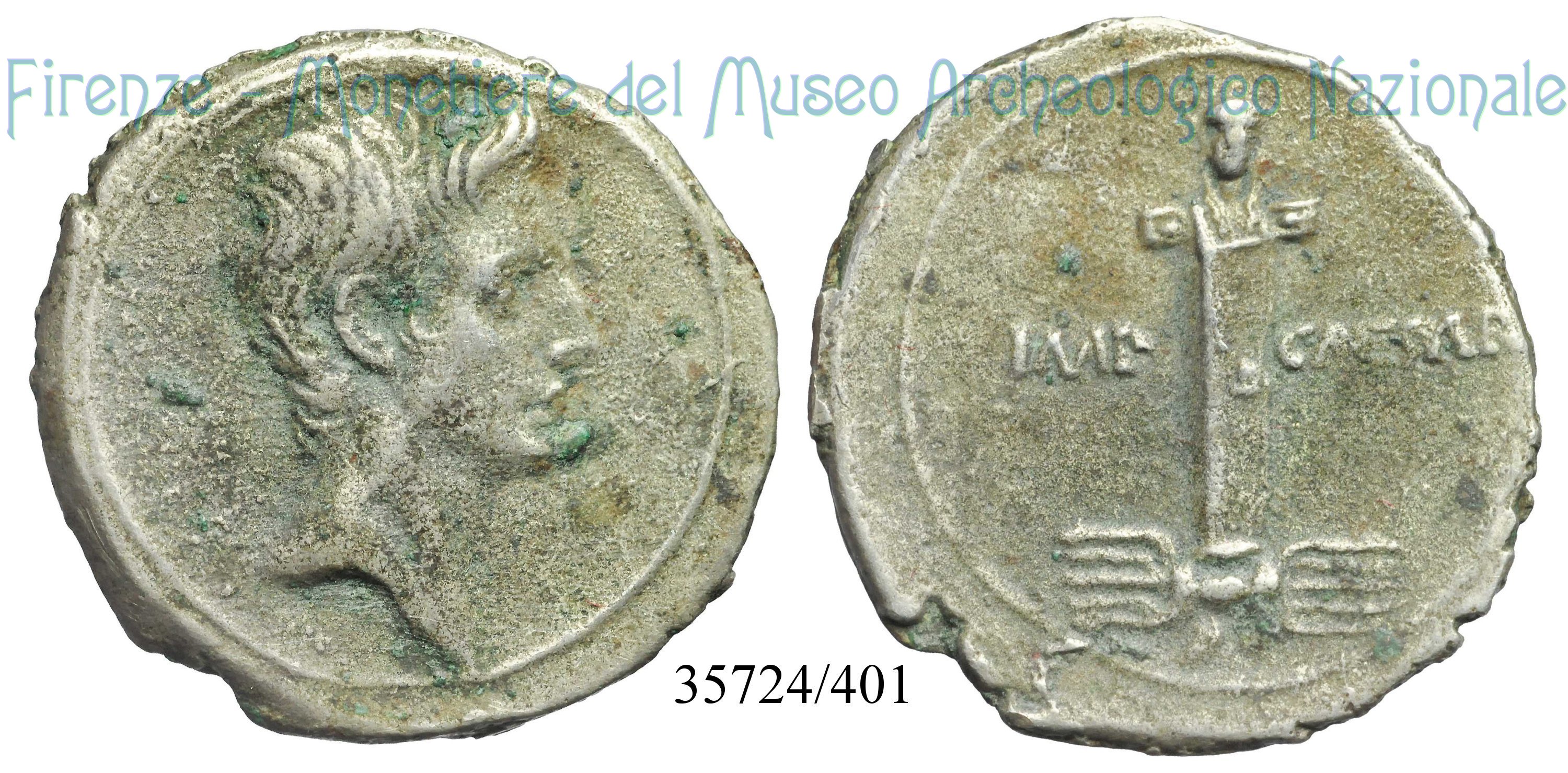 CAESAR- DIVI F / RIC 256 - Nettuno (32-29 a.C. - Brundisium o Roma) D/ R/ CAESAR- DIVI F RIC I, 256 (Migliarini 49) (B) | Monetiere Archeologico Firenze | Sat 5/10/13 - 18:02 | ||