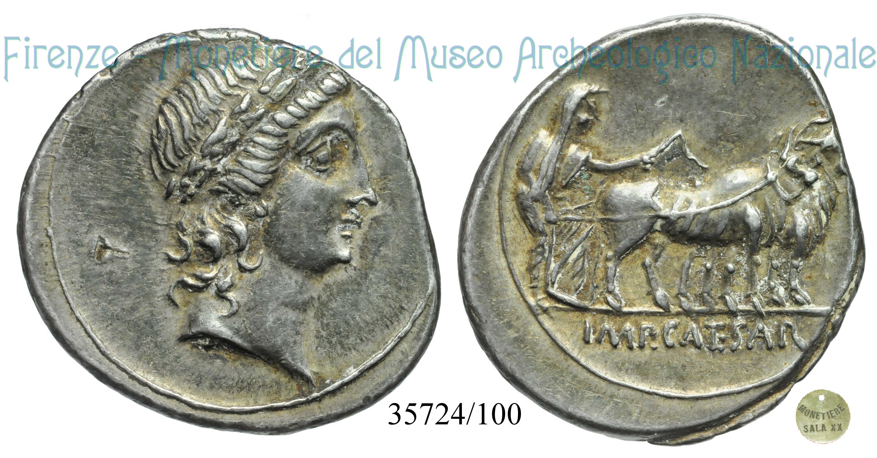 IMP CAESAR / RIC 272 - Coppia di buoi (29-27 a.C. - Brundisium o Roma) D/ R/ IMP CAESAR RICI, 272 (Migliarini 42) (B) | Monetiere Archeologico Firenze | Sat 30/11/13 - 22:13 | ||
