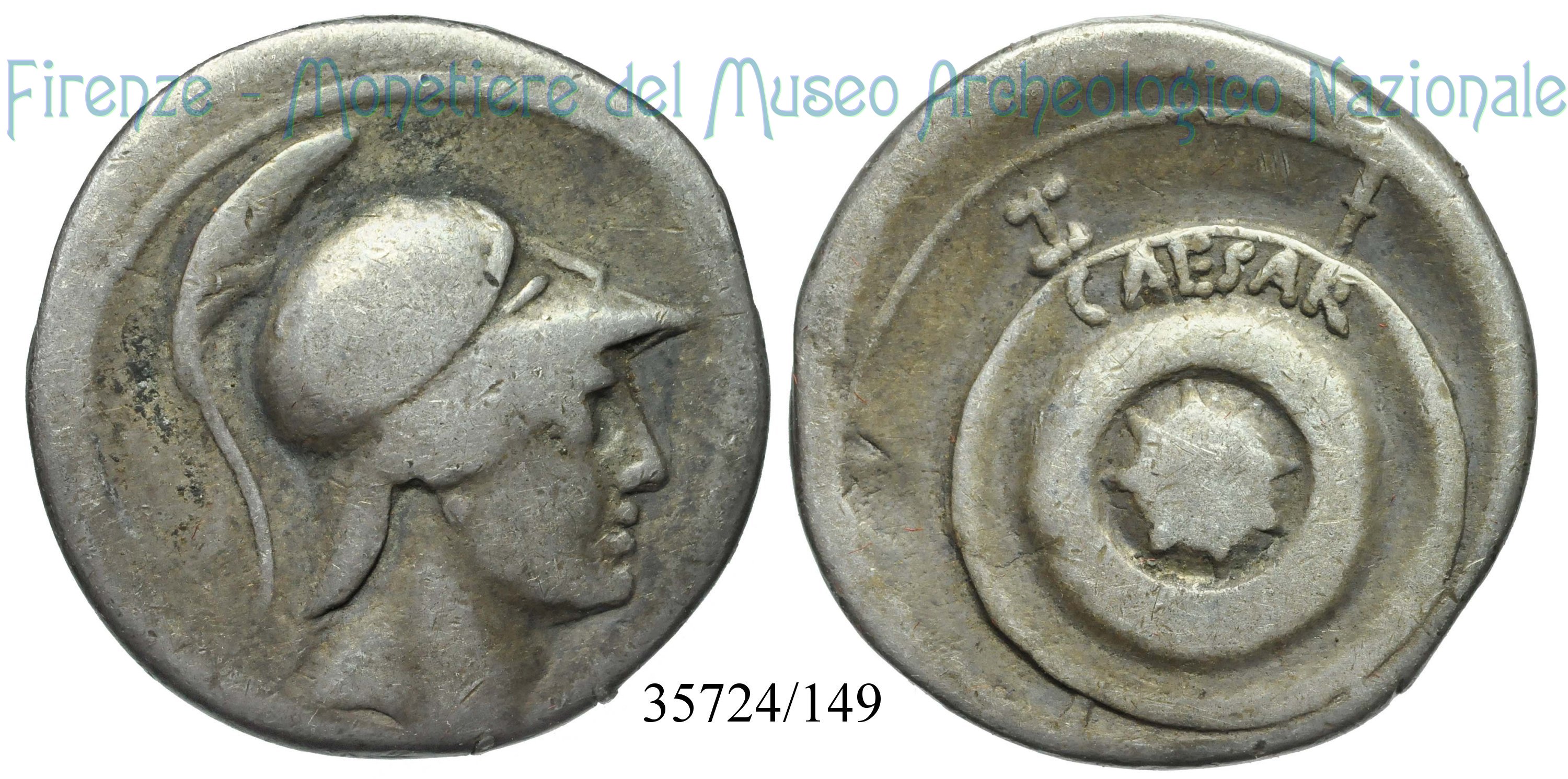 CAESAR / RIC 274 - Scudo rotondo con al centro una stella (29-27 a.C. - Brundisium o Roma) D/ IMP R/ CAESAR RIC I, 274 | Monetiere Archeologico Firenze | Tue 3/12/13 - 18:21 | ||