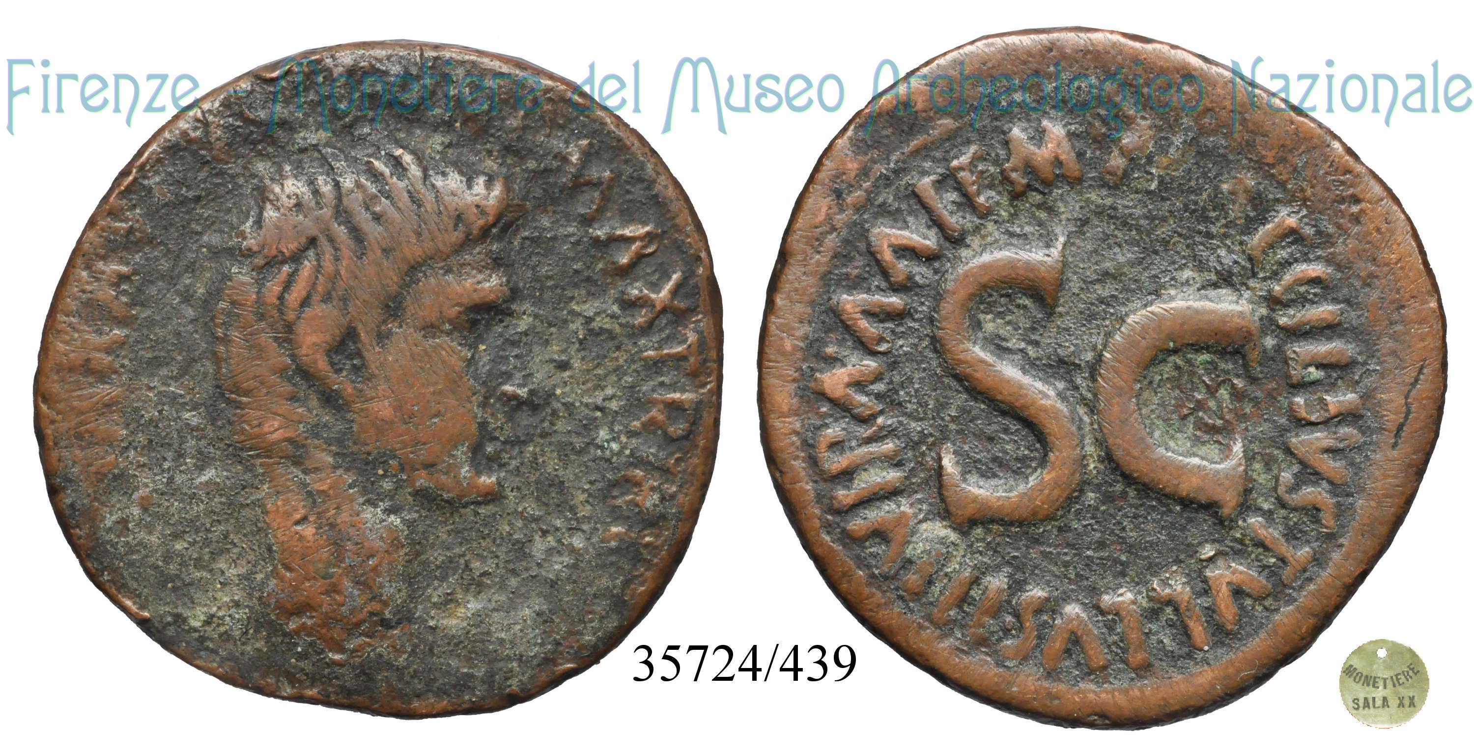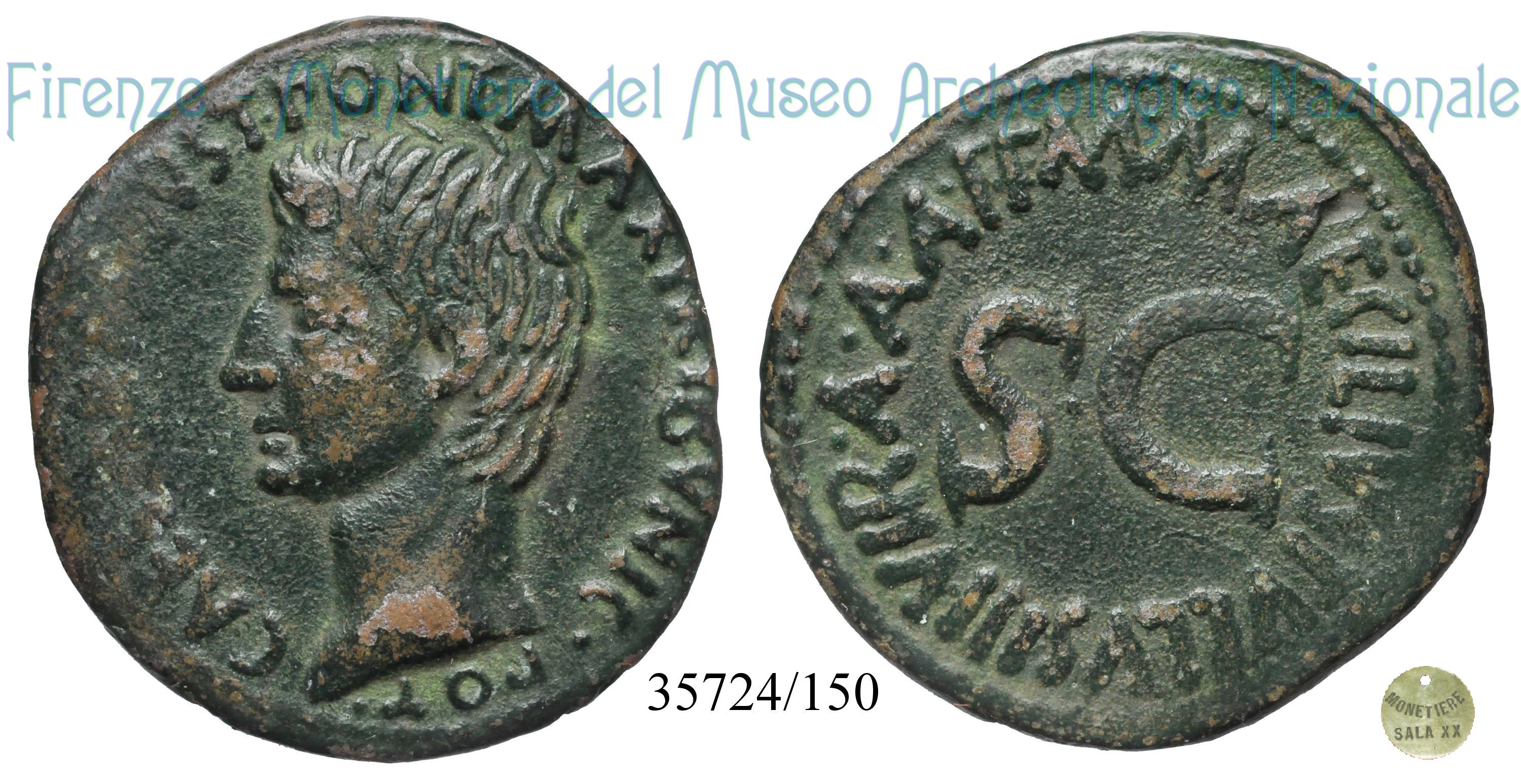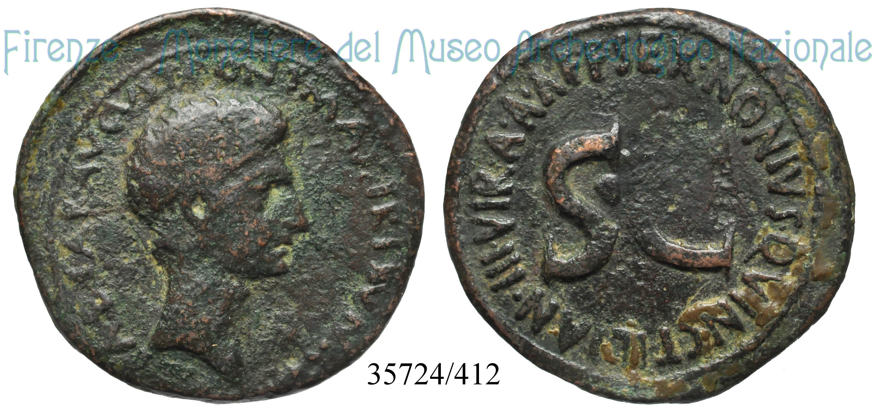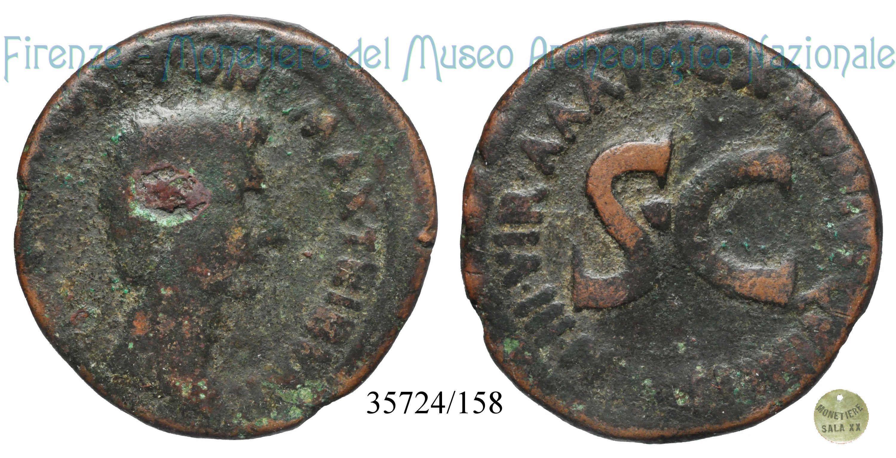 Nettuno con delfino - RIC 58 (37-41 d.C. - Roma) D/ M AGRIPPA L F COS III R/ SC RIC, I, 58 | Monetiere Archeologico Firenze | Mon 19/08/13 - 12:00 | ||