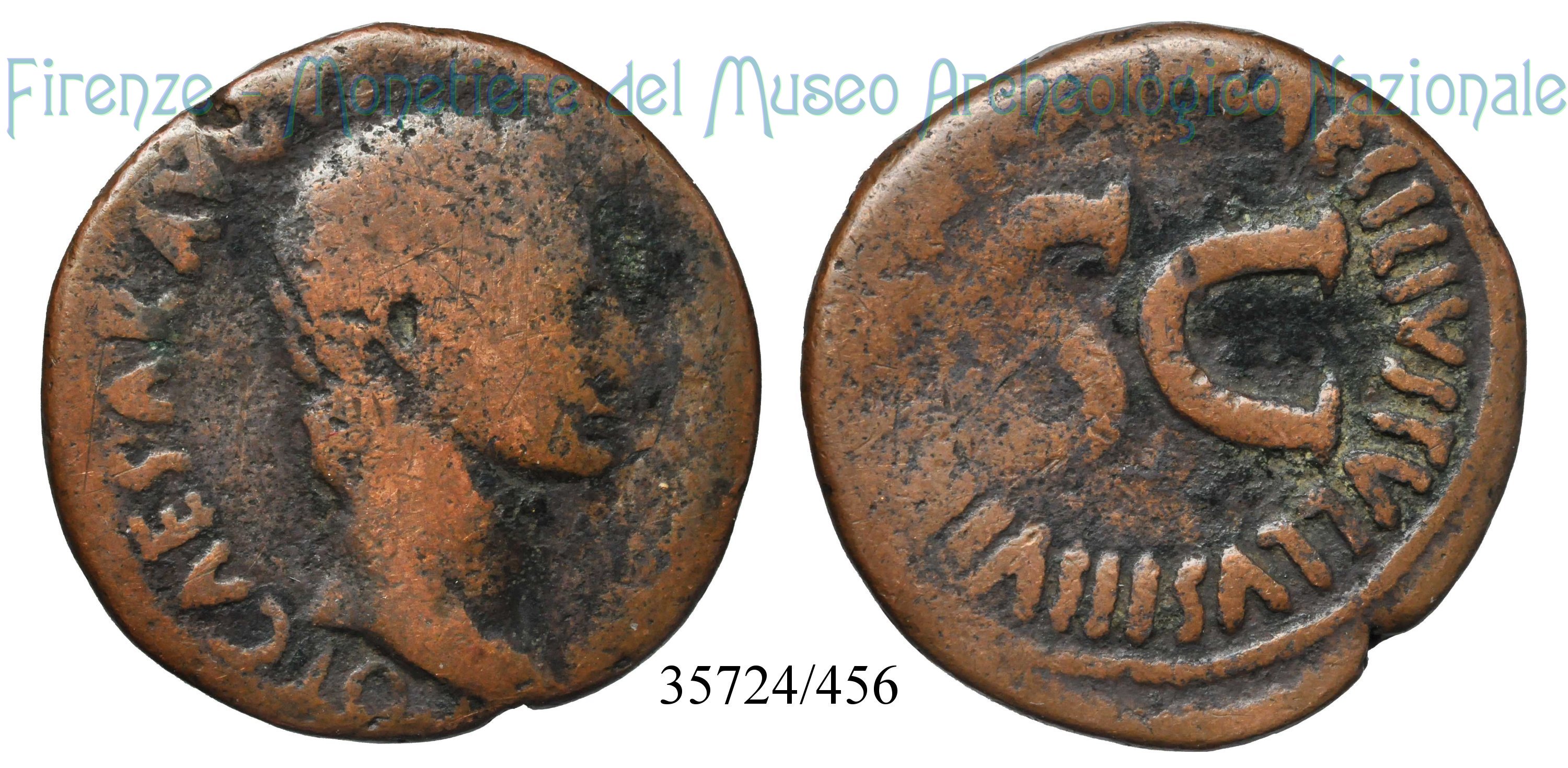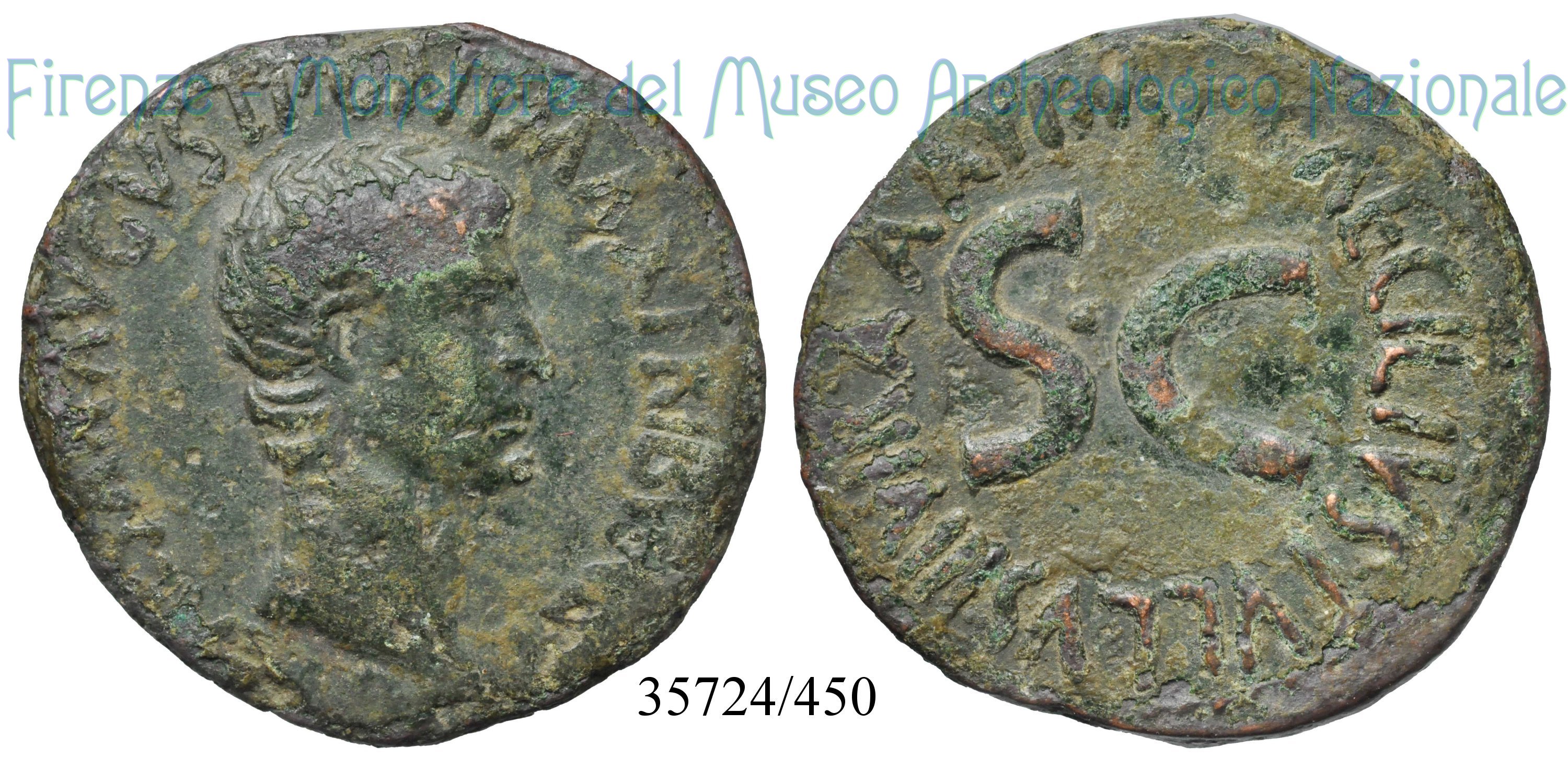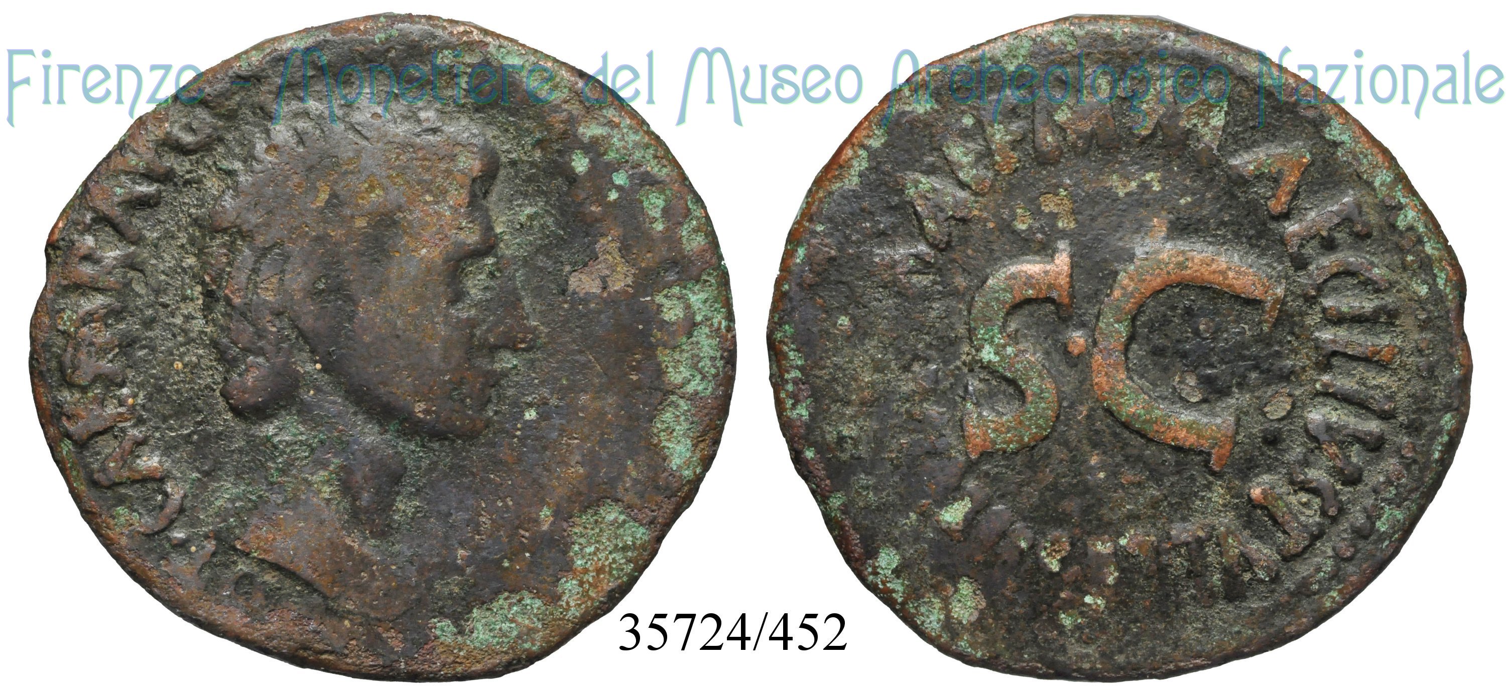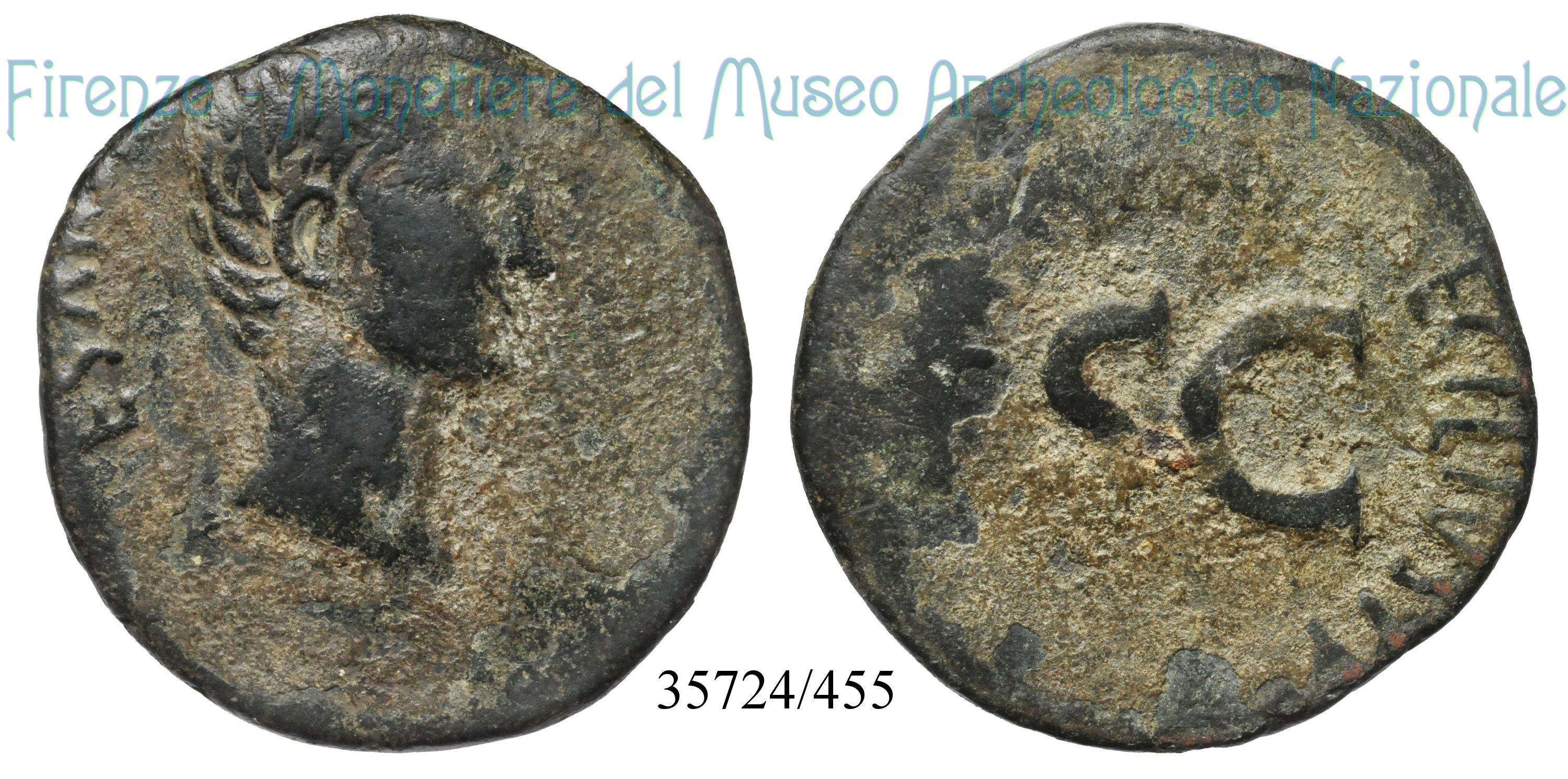 Nettuno con delfino - RIC 58 (37-41 d.C. - Roma) D/ M AGRIPPA L F COS III R/ SC RIC, I, 58 | Monetiere Archeologico Firenze | Mon 19/08/13 - 12:00 | ||