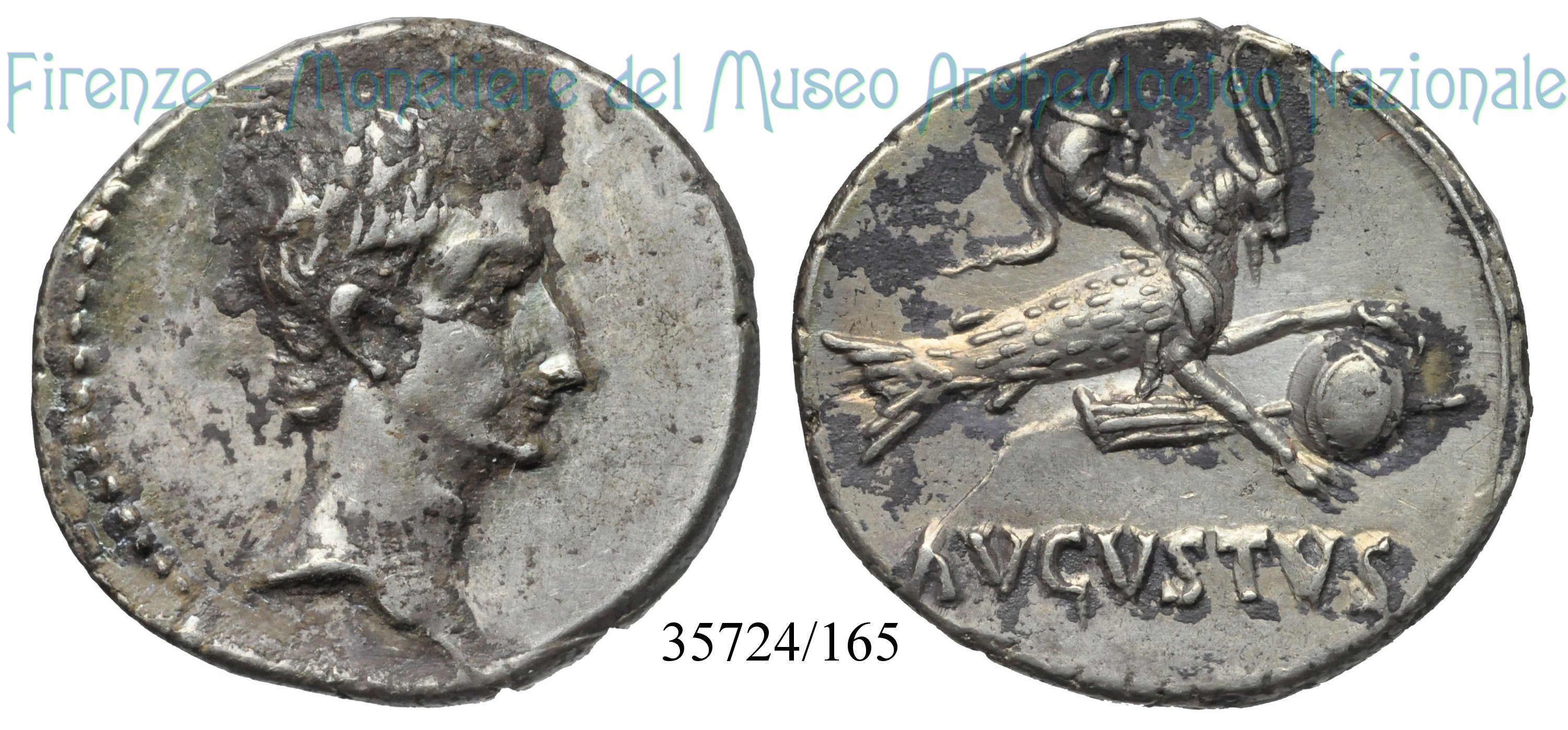 IMP- CAESAR / RIC 269a (come Ottaviano) (29-27 a.C. - Brundisium o Roma) D/ R/ IMP- CAESAR RIC I, 264 (Migliarini 55) (B) | Monetiere Archeologico Firenze | Mon 14/10/13 - 22:29 | ||