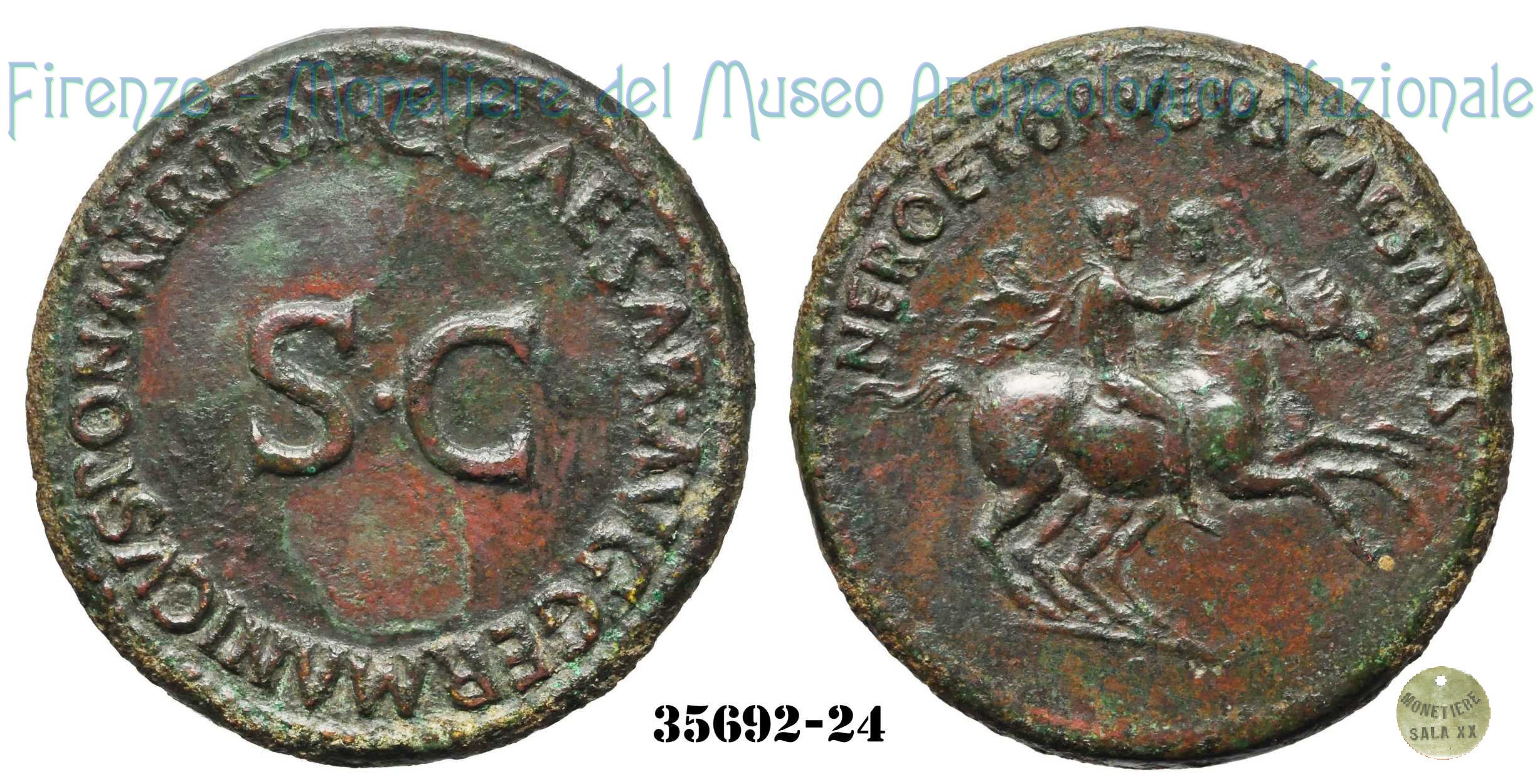 C CAESAR AVG GERMANICVS PON M TR POT - Ric 34 (37-38 d.C. - Roma) D/ NERO ET DRVSVS CAESARES R/ C CAESAR AVG GERMANICVS PON M TR POT Ric, I, 34; Migliarini 413; GiuCla 129. (B) | Monetiere Archeologico Firenze | Wed 17/07/13 - 17:00 | ||
