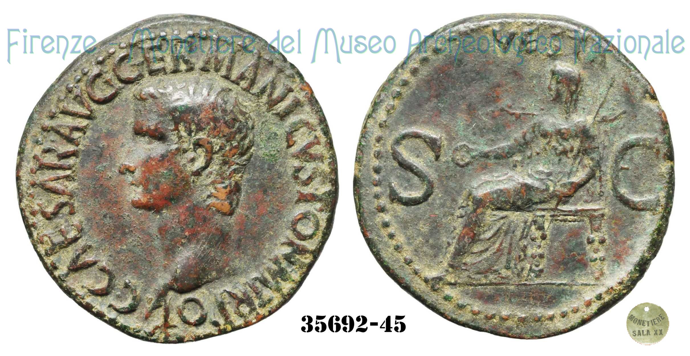 C CAESAR AVG GERMANICVS PON M TR POT- Ric.35 (37-38 d.C. - Roma) D/ GERMANICVS CAESAR TI AVGVST F DIVI AVG N R/ CAESAR AVG GERMANICVS PON M TR POT grande S.C. al centro Ric. 35 (Vol. 1); C. 1. (B) | Monetiere Archeologico Firenze | Fri 26/07/13 - 17:47 | ||