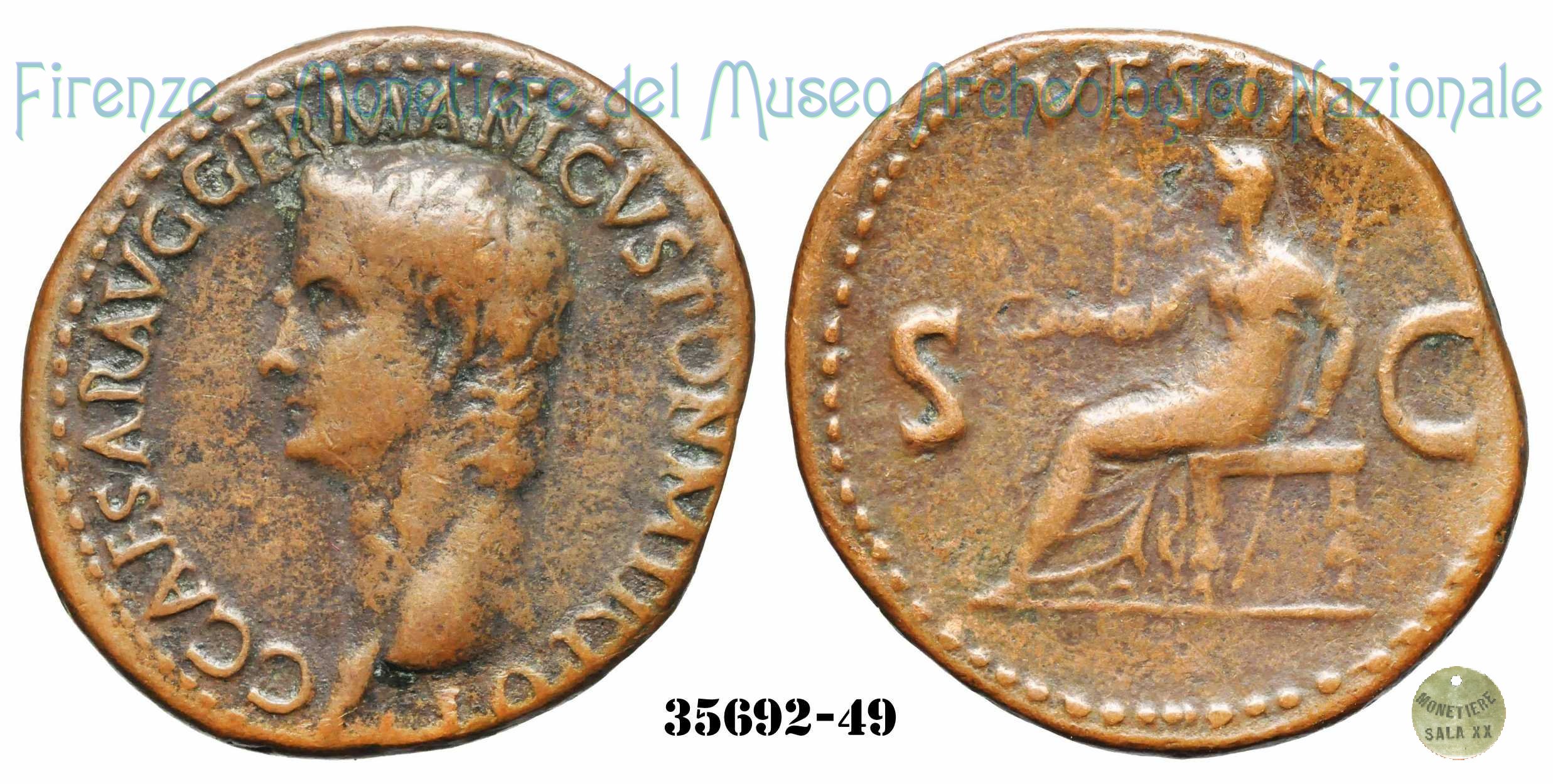 C CAESAR DIVI AVG PRON AVG P M TR P III P P-Ric.43 (39-40 d.C. - Roma) D/ GERMANICVS CAESAR TI AVGVST F DIVI AVG N R/ C CAESAR DIVI AVG PRON AVG P M TR P III P P grande S.C. al centro Ric. 43 (Vol. 1); BMC 60; Migliarini 424; np 028. (B) | Monetiere Archeologico Firenze | Fri 26/07/13 - 13:46 | ||