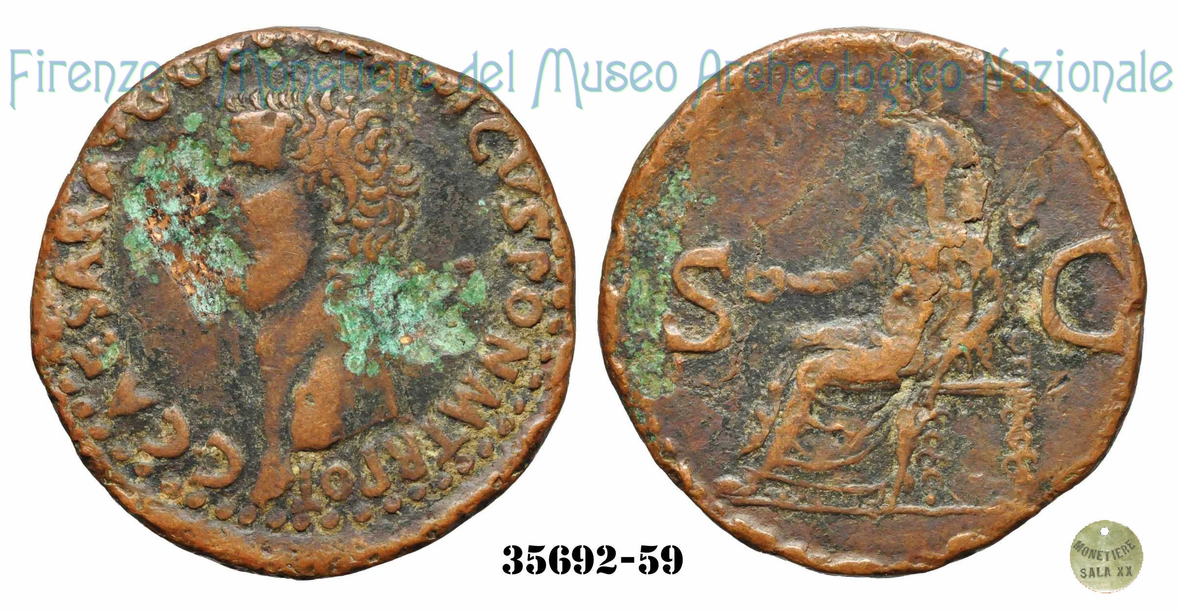 PON M TRP III PP COS TERT - RIC 45 (39-40 d.C. - Roma) D/ C CAESAR DIVI AVG PRON AVG R/ PON M TRP III PP COS TERT Ric, I, 45; Migliarini 420. | Monetiere Archeologico Firenze | Sun 28/07/13 - 11:10 | ||