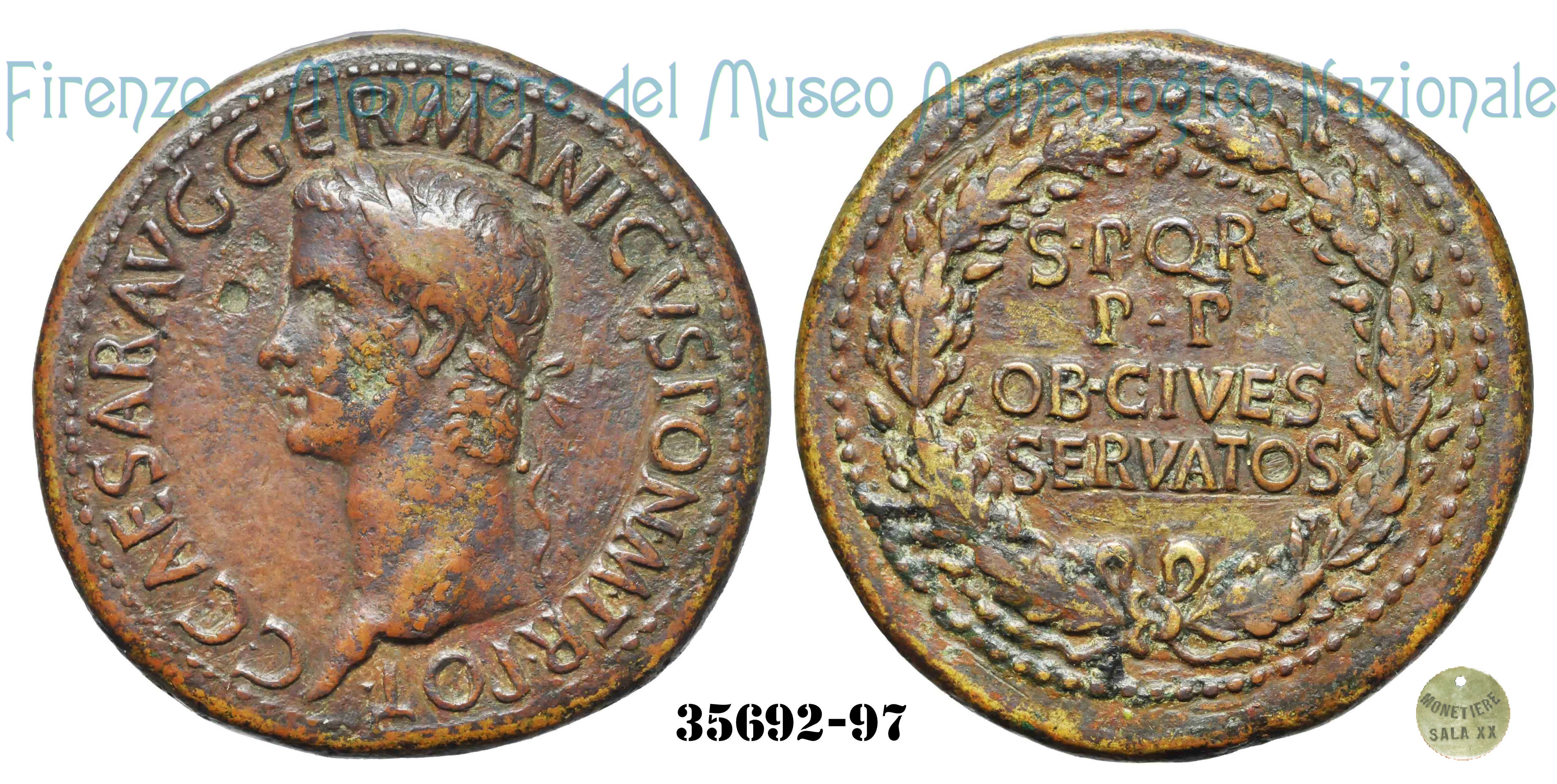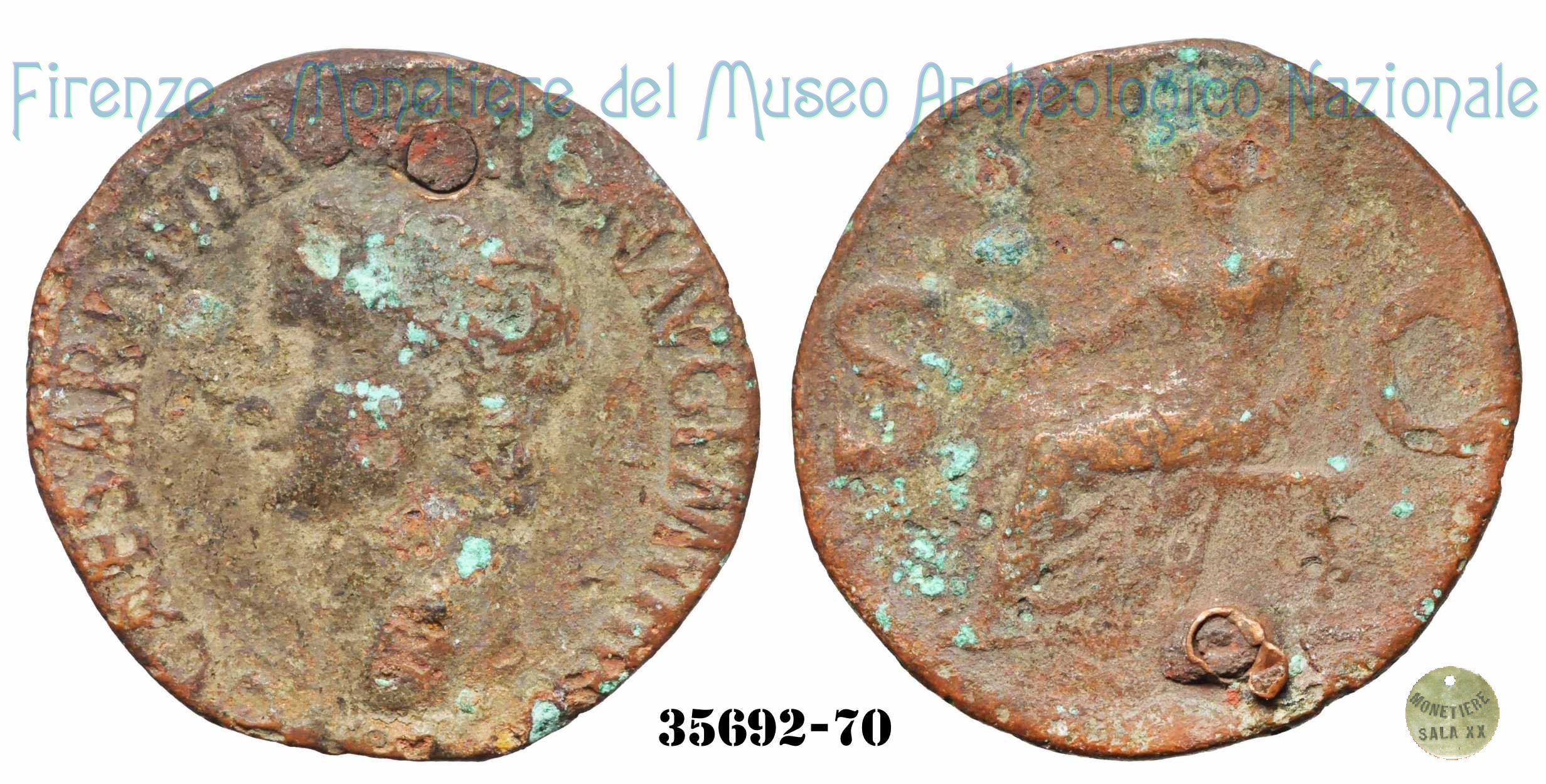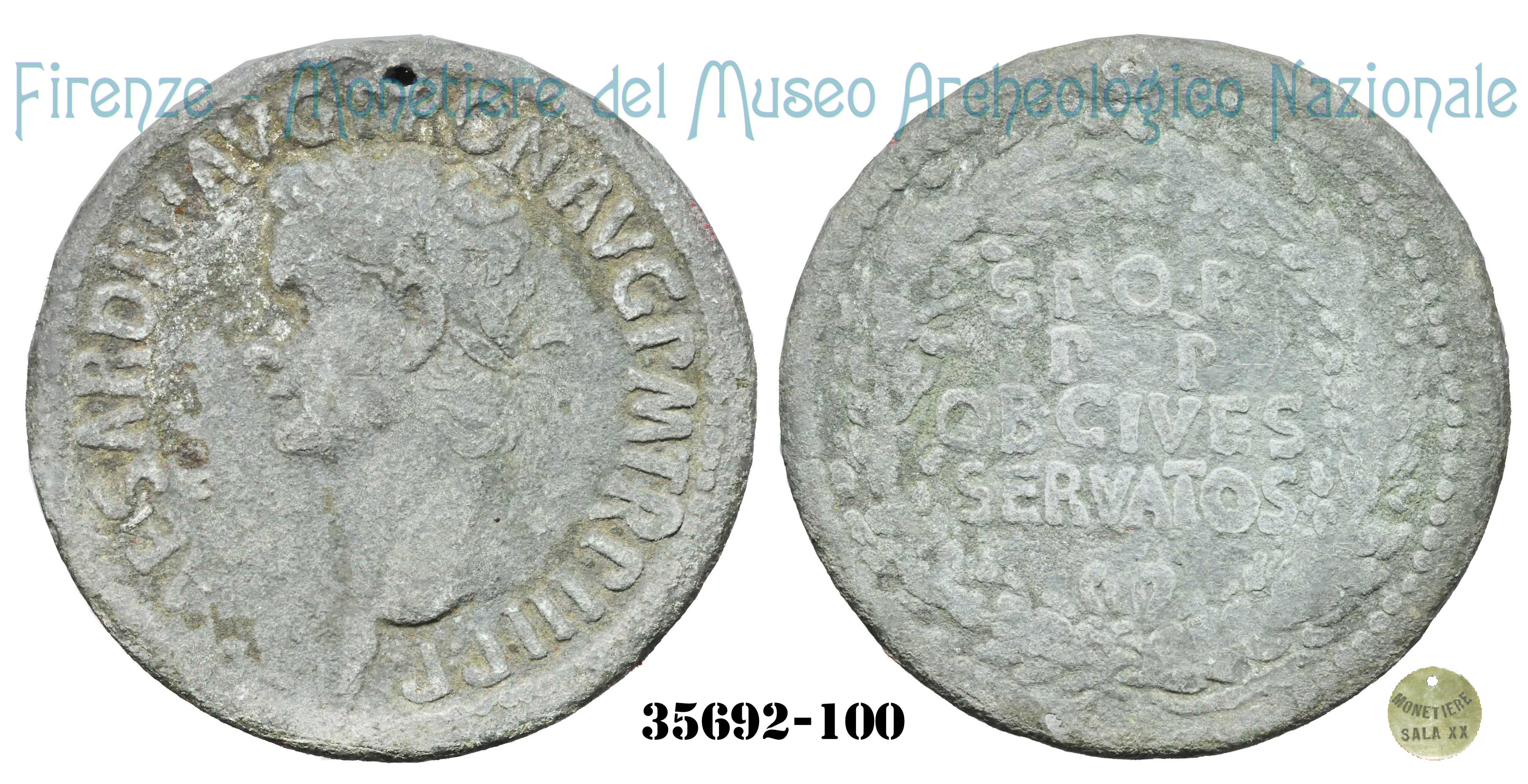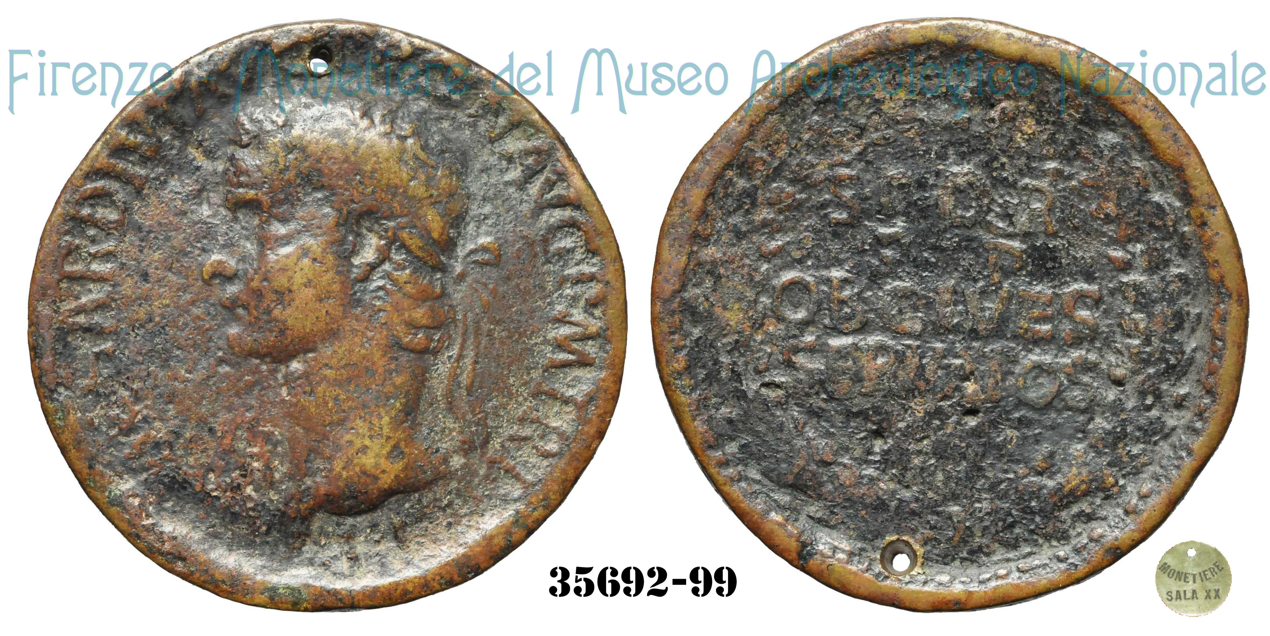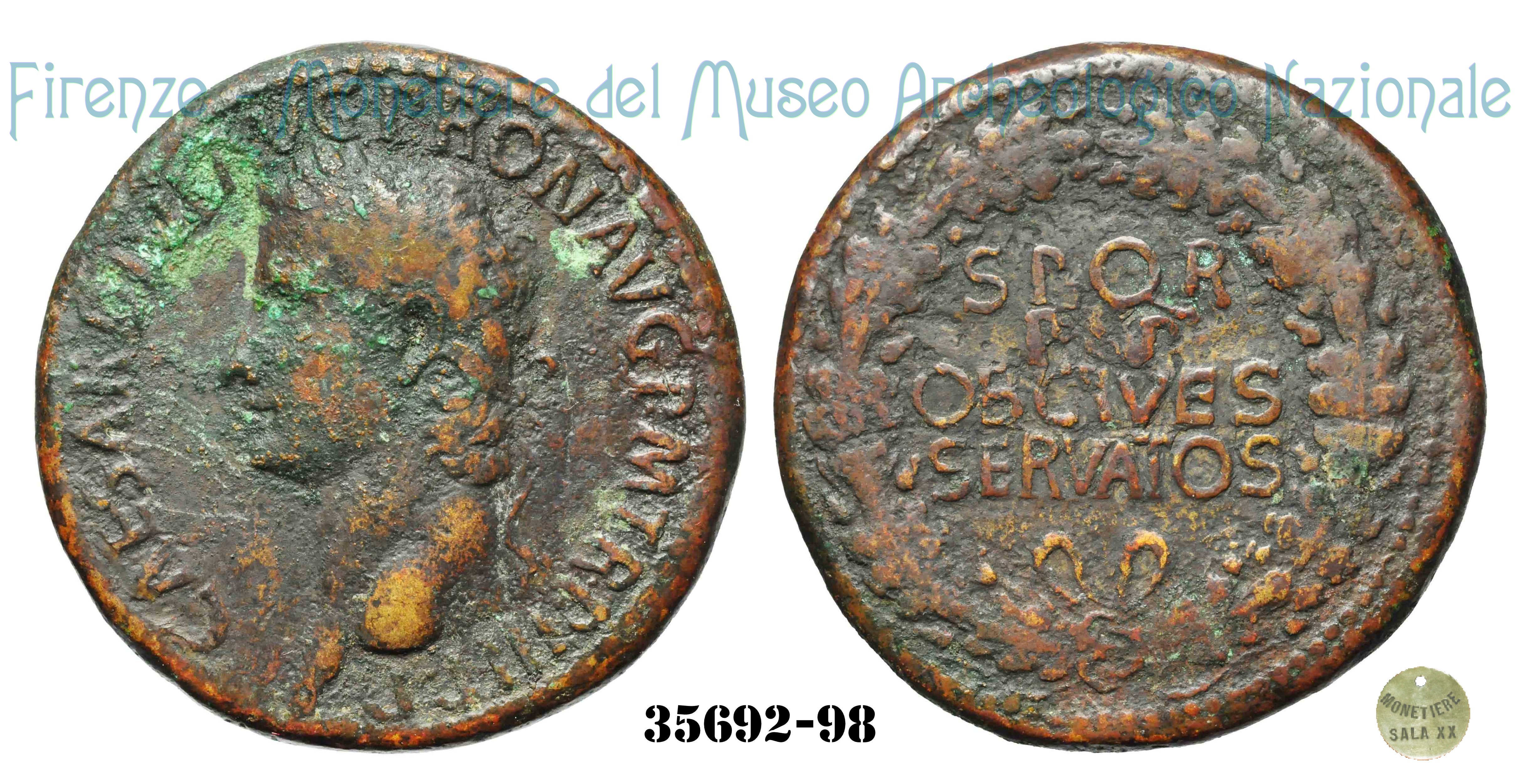 SPQR / PP / OB CIVES / SERVATOS - RIC 46 (39-40 d.C. - Roma) D/ C CAESAR DIVI AVG PRON AVG PM TRP III PP R/ SPQR / PP / OB CIVES / SERVATOS Ric. I, 46; np 035. | Monetiere Archeologico Firenze | Fri 26/07/13 - 09:47 | ||