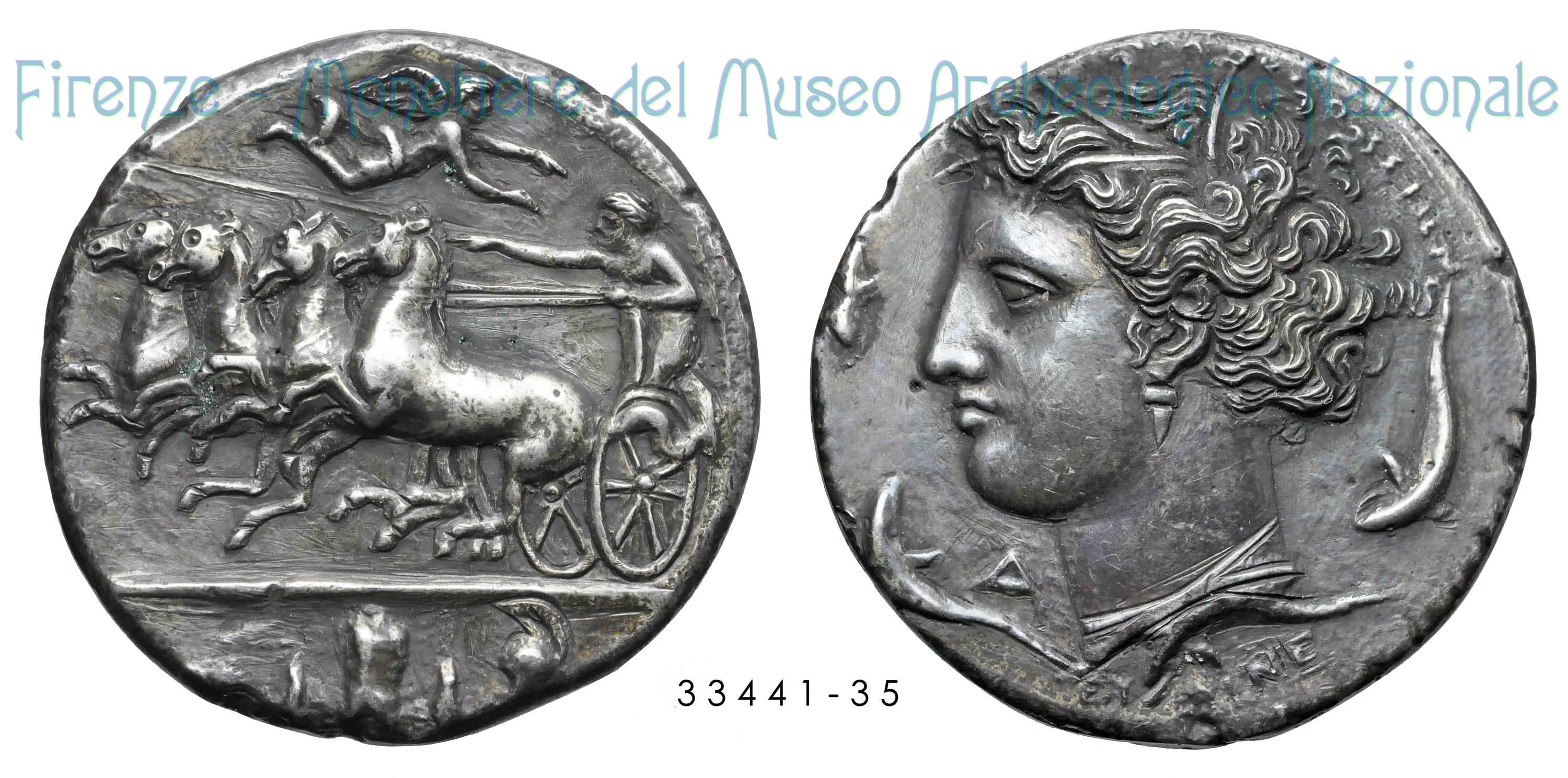 Testa Arethusa_Quadriga al galoppo (Agatocle) (317-310 a.C. - Syracusae) D/ R/ ΣΥΡΑΚΟΣΙΩΝ (B) | Monetiere Archeologico Firenze | Fri 24/02/12 - 11:19 | ||