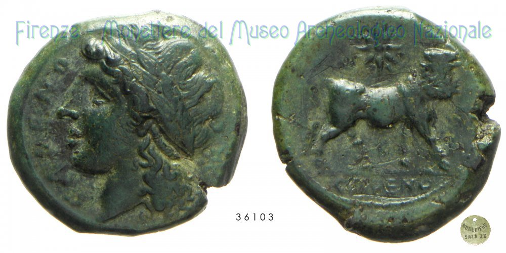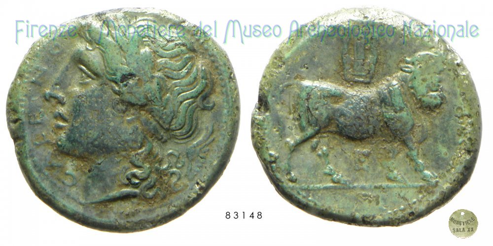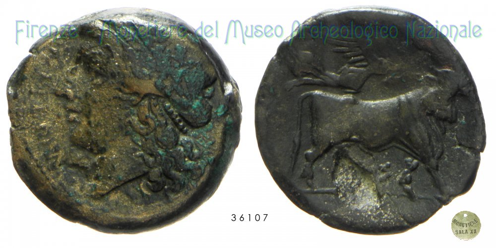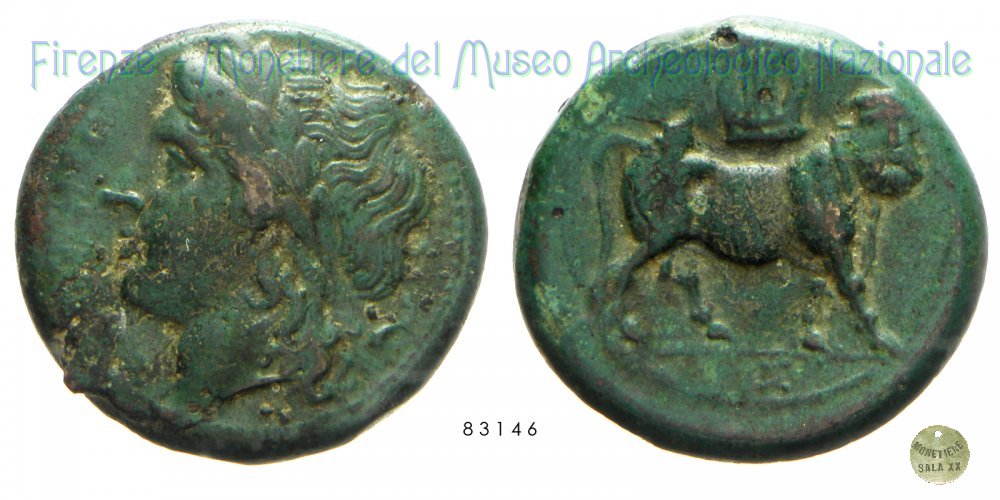 AE_Serie Apollo-Toro androprosopo (265-240 a.C. - Compulteria) D/ [KVΠELTEP]NVM R/ HN 437;