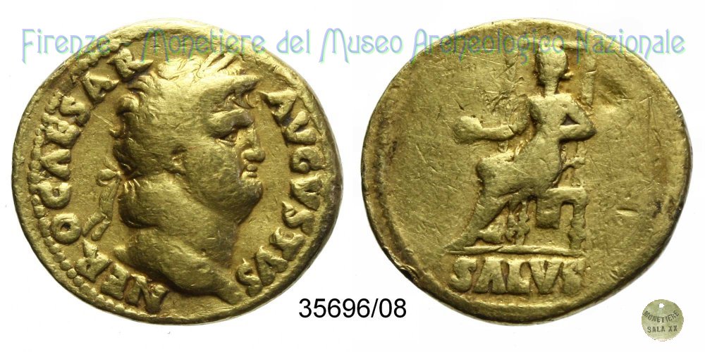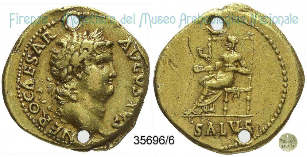 SALVS - Ric 59 (65-66 d.C. - Roma) D/ NERO CAESAR AVGVSTVS R/ SALVS (in esergo) Ric 59