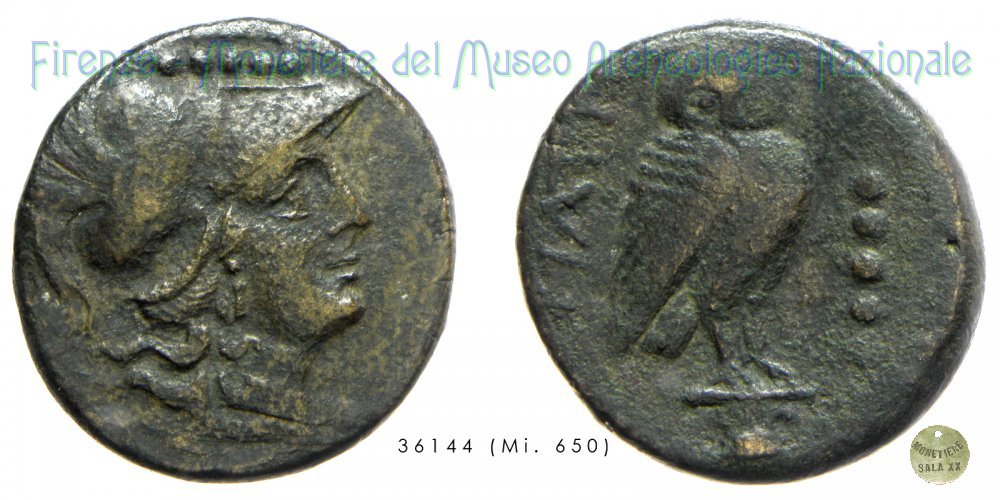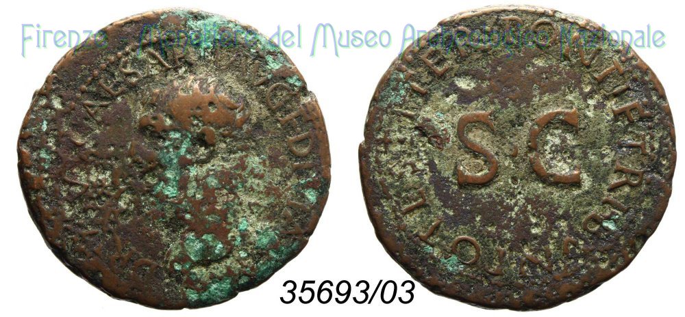 La scarsa conservazione di questo esemplare, non permette di valutare l'etnico al rovescio.
