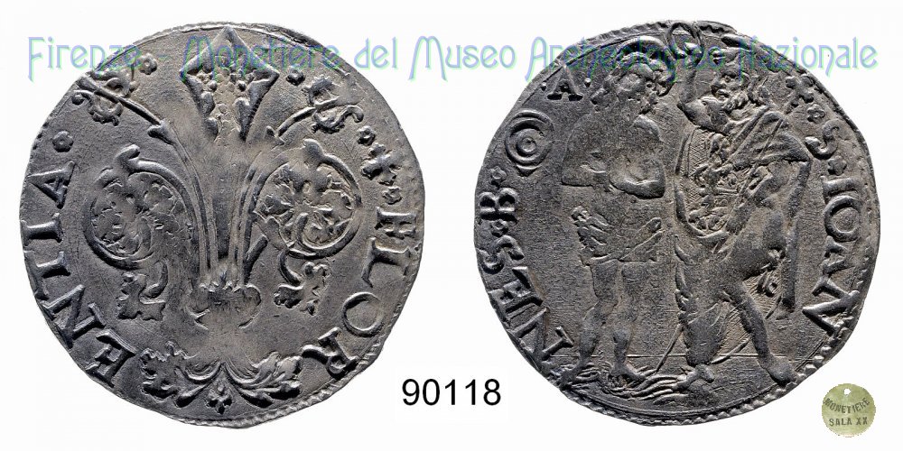Barile da 10 soldi di quattrini bianchi (1518 - Firenze) D/ * * + * FLOR ï¼ ENTIA * * R/ * S * IOAN ï¼ NES * B* Montespertoli n. 198;