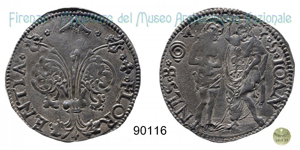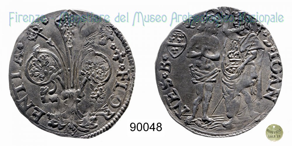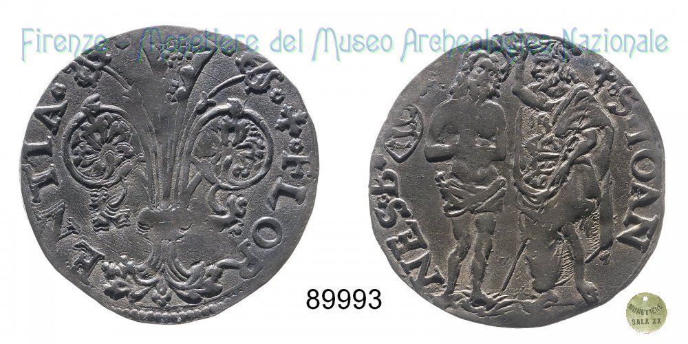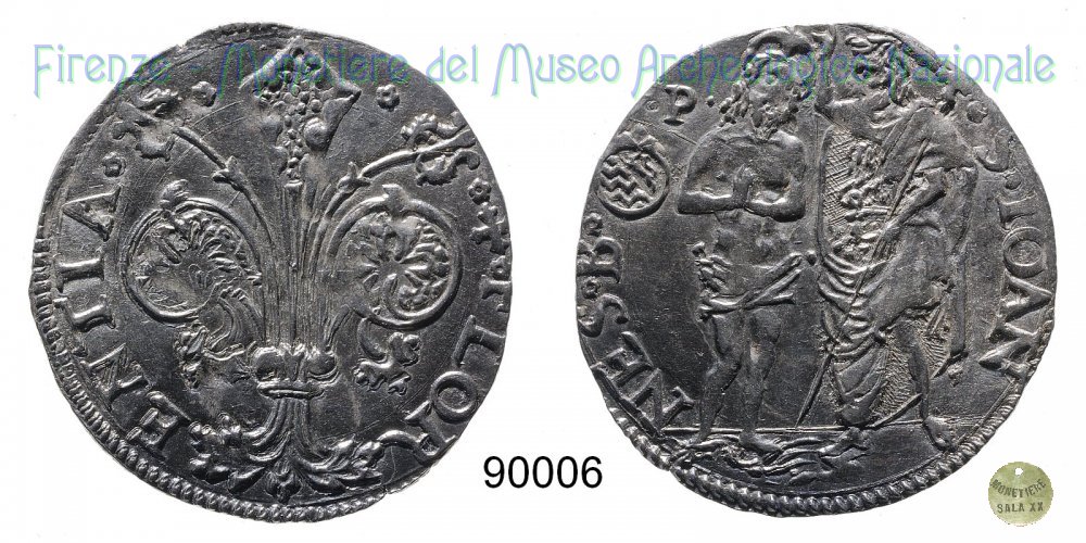 Barile da 10 soldi di quattrini bianchi (1516 - Firenze) D/ * * + * FLOR ï¼ ENTIA * * R/ * S * IOAN ï¼ NES * B* Montespertoli n. 193;