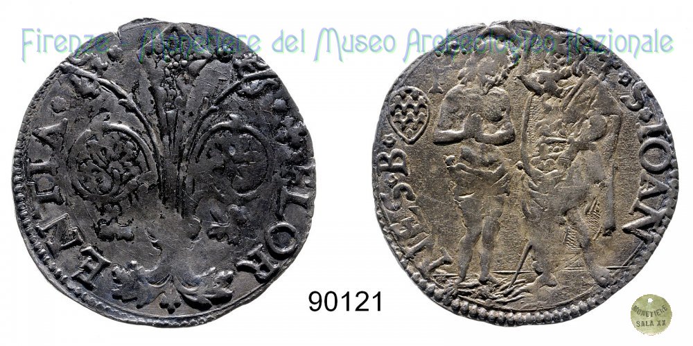 Barile da 10 soldi di quattrini bianchi (1521 - Firenze) D/ * * + * FLOR ï¼ ENTIA * * R/ * S * IOAN ï¼ NES * B* Montespertoli n. 201;