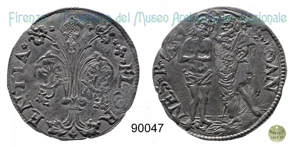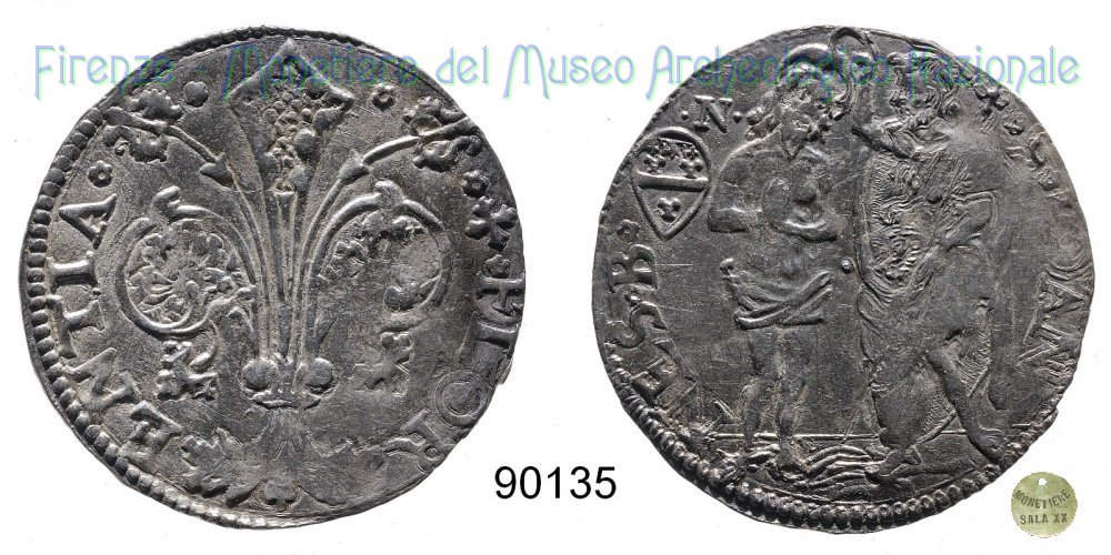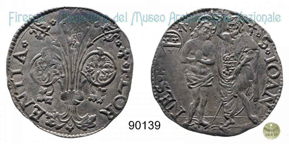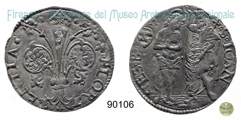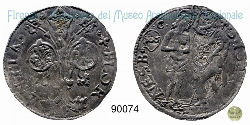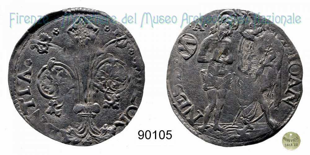 Barile da 10 soldi di quattrini bianchi (1514 - Firenze) D/ * * + * FLOR ï¼ ENTIA * * R/ * S * IOAN ï¼ NES * B* Montespertoli n. 182;