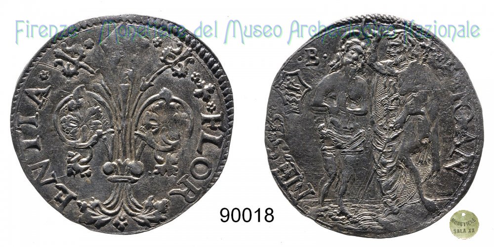 Barile da 10 soldi di quattrini bianchi (1513 - Firenze) D/ * * + * FLOR ï¼ ENTIA * * R/ * S * IOAN ï¼ NES * B* Montespertoli n. 153;