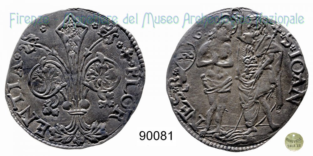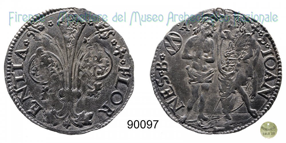 Barile da 10 soldi di quattrini bianchi (1513 - Firenze) D/ * * + * FLOR ï¼ ENTIA * * R/ * S * IOAN ï¼ NES * B* Montespertoli n. 174;