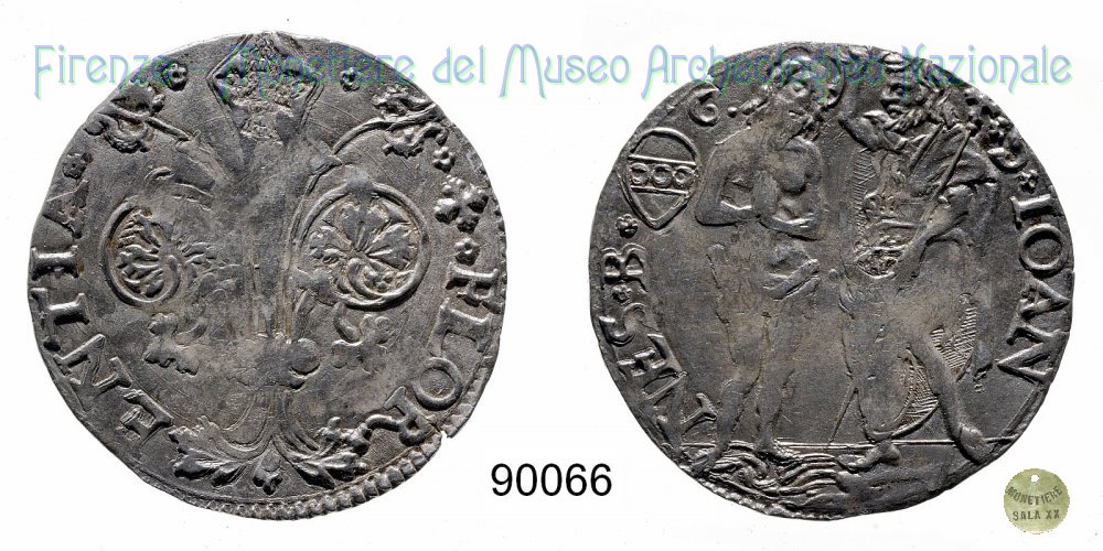 Barile da 10 soldi di quattrini bianchi (1513 - Firenze) D/ * * + * FLOR ï¼ ENTIA * * R/ * S * IOAN ï¼ NES * B* Montespertoli n. 172;