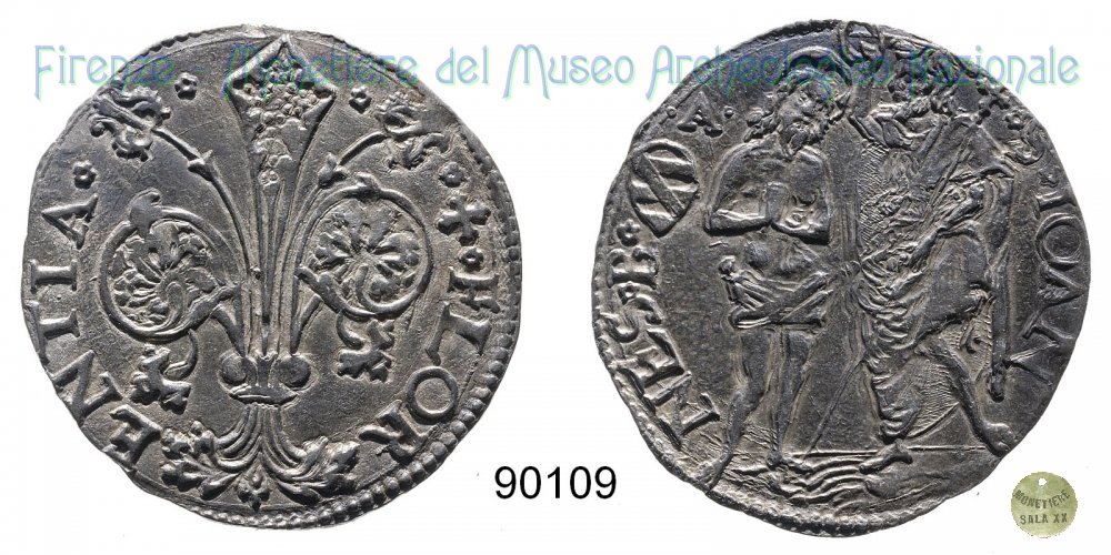 Barile da 10 soldi di quattrini bianchi (1514 - Firenze) D/ * * + * FLOR ï¼ ENTIA * * R/ * S * IOAN ï¼ NES * B* Montespertoli n. 178;