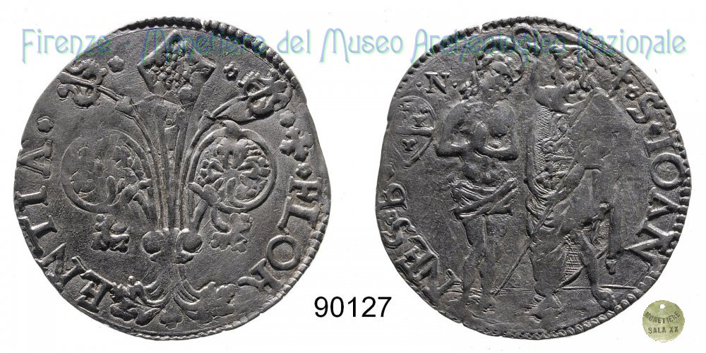 Barile da 10 soldi di quattrini bianchi (1510 - Firenze) D/ * * + * FLOR ï¼ ENTIA * * R/ * S * IOAN ï¼ NES * B* Montespertoli n. 78;
