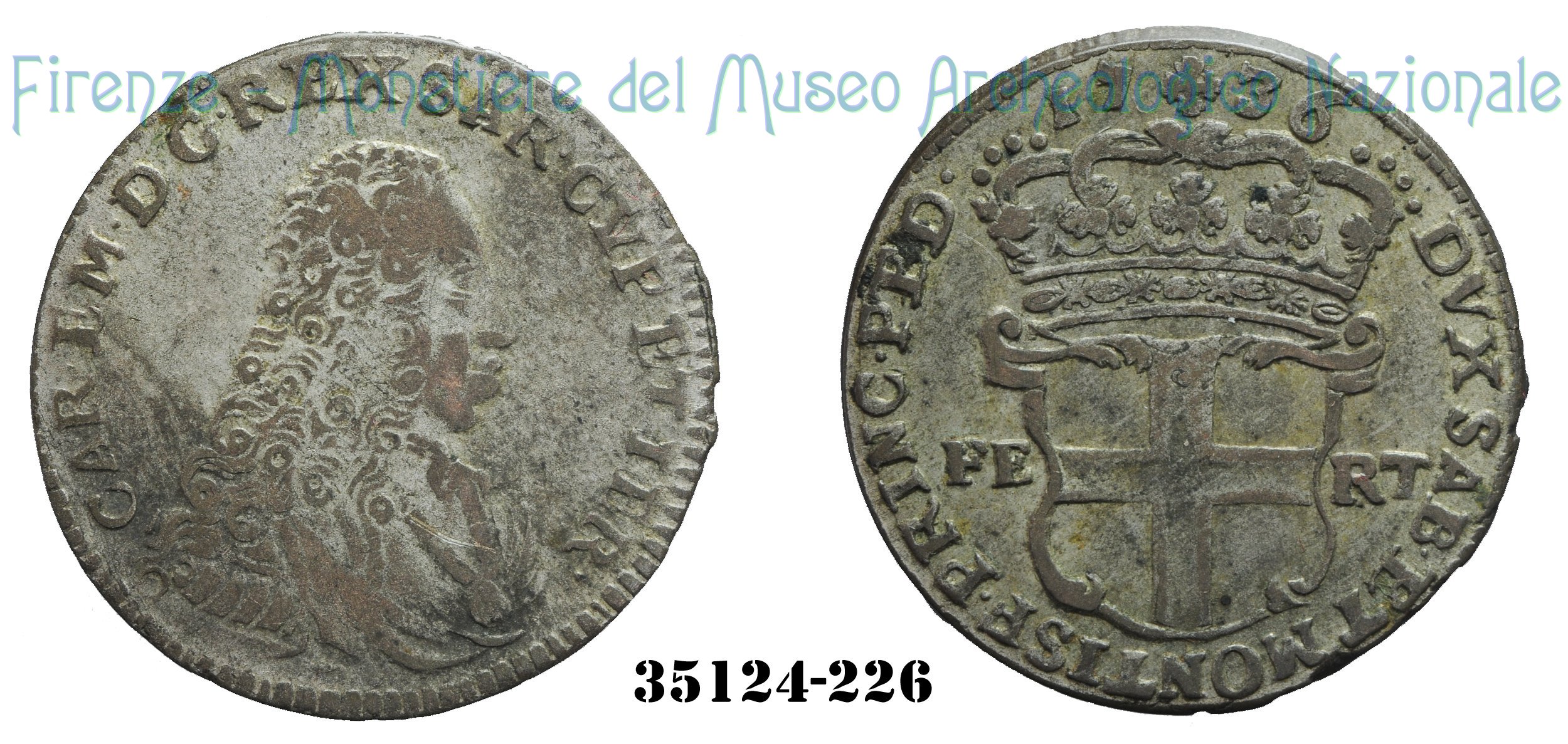 Da 5 Soldi - 1° Tipo (1736 - Torino) D/ CAR EM D G REX SAR CYP ET IER R/ DVX SAB ET MONTISF PRINC PED Montenegro 45 | Monetiere Archeologico Firenze | Sun 1/02/15 - 20:29 | ||