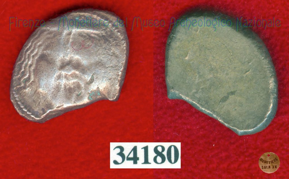 Testa di Metus / senza tipo (HN Italy 152) (400 a.C. - Pupluna) SNG Firenze, 288 Entrambe le facce | Monetiere Archeologico Firenze | Tue 13/04/10 - 16:52 | ||