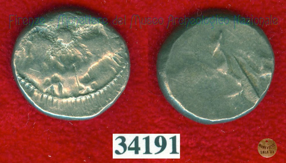 Hippalektryon a s./Quadrato inc. (HN Italy, 92-93) (500-450 a.C. - Pupluna?) SNG Firenze, 24 Entrambe le facce | Monetiere Archeologico Firenze | Mon 12/04/10 - 20:19 | ||