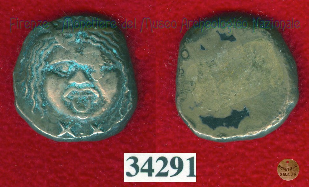 Gorgoneion/Quadrato incuso (HN Italy, 94) (500-450 a.C. - Pupluna?) SNG Firenze, 57 Entrambe le facce | Monetiere Archeologico Firenze | Mon 12/04/10 - 20:08 | ||